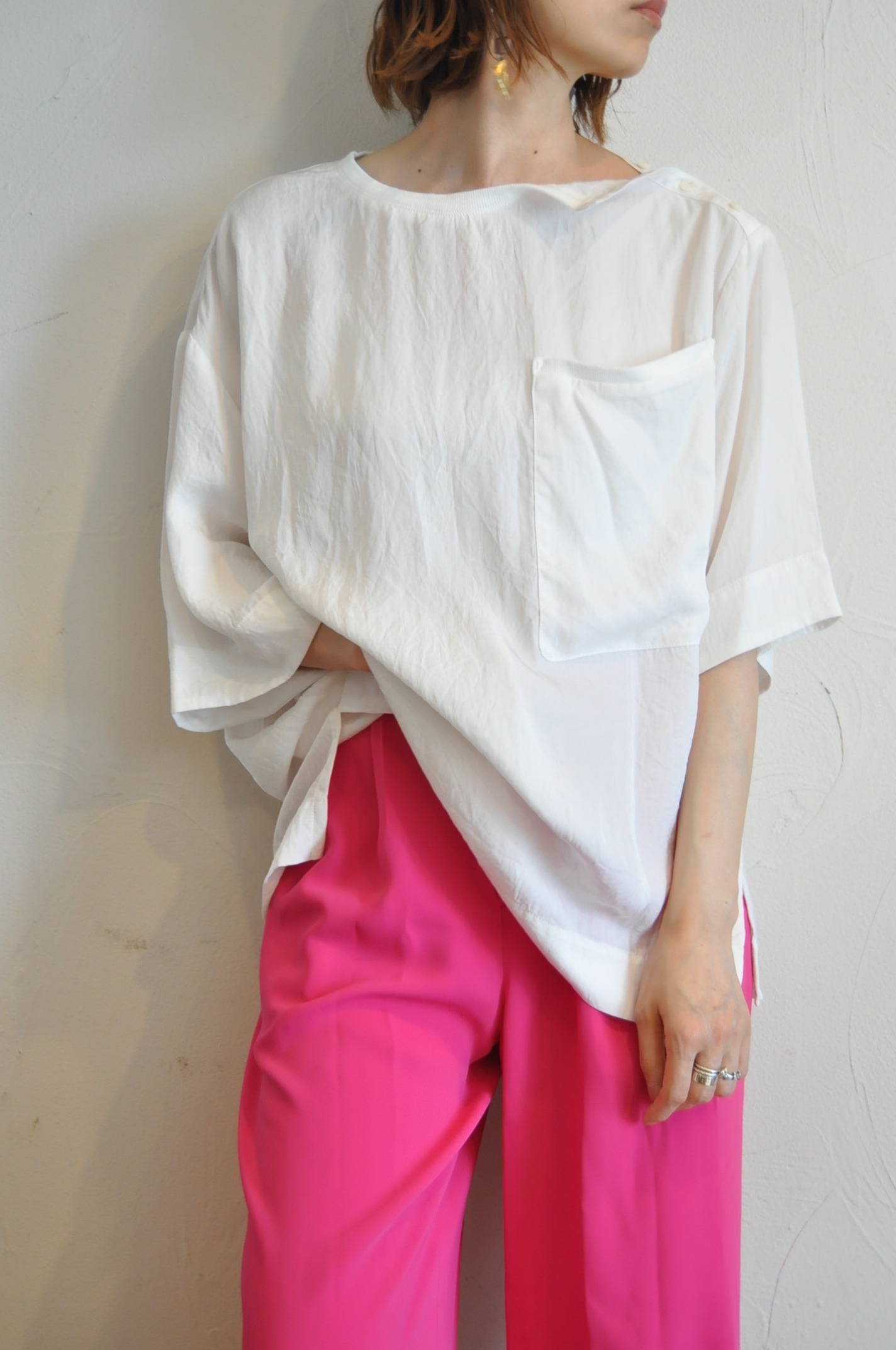 アセテート素材のプルオーバー。