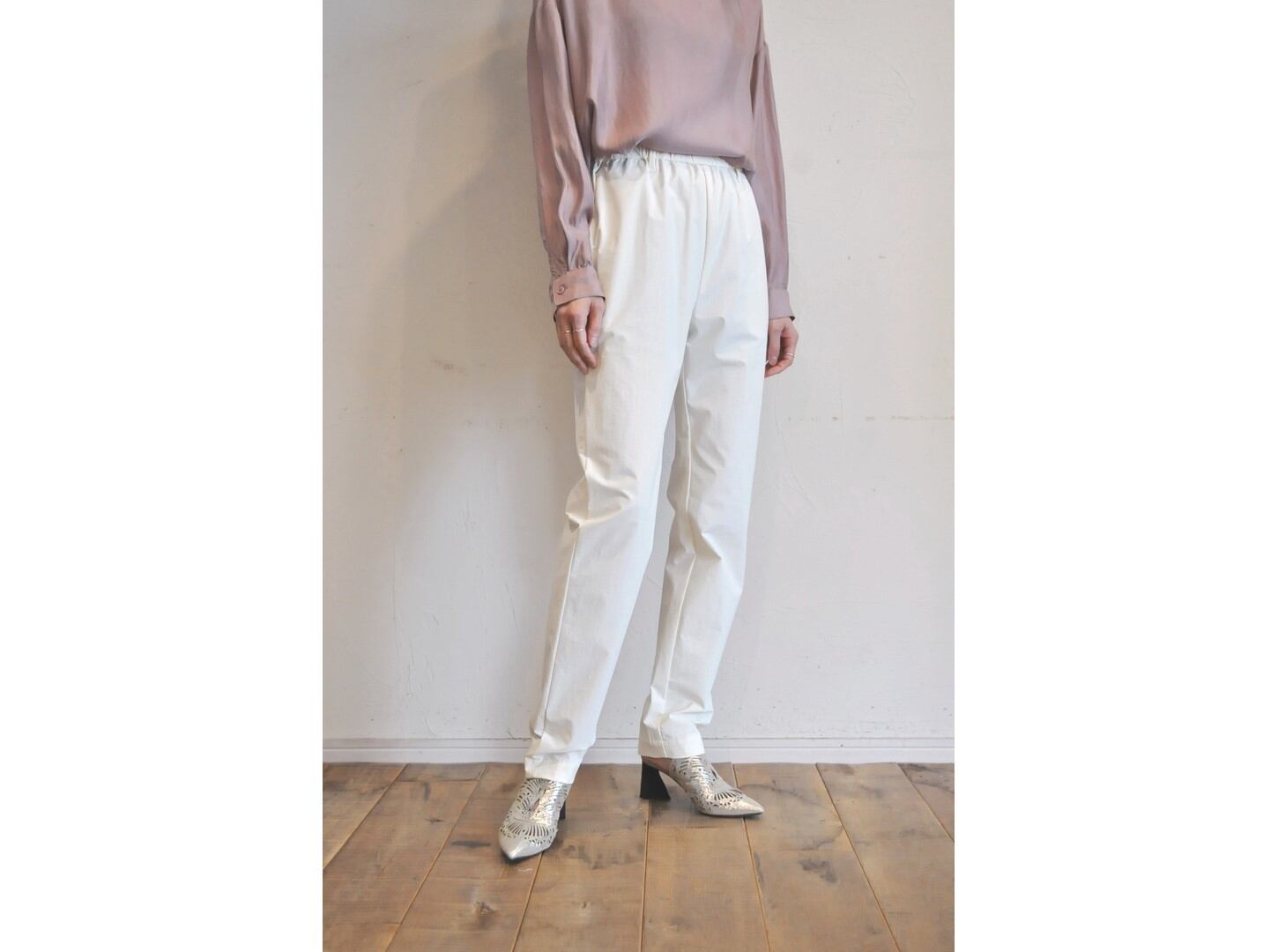細身のスッキリとしたシルエットですが、ストレッチ性があるため、穿きやすいアイテムです。