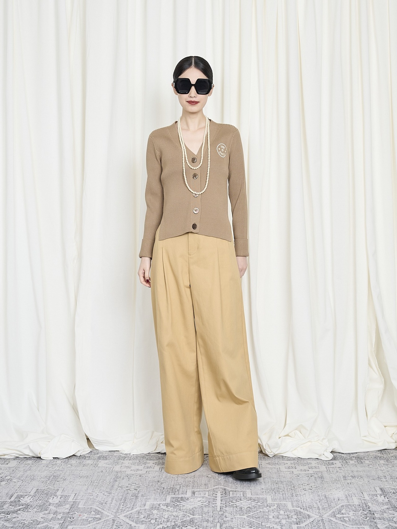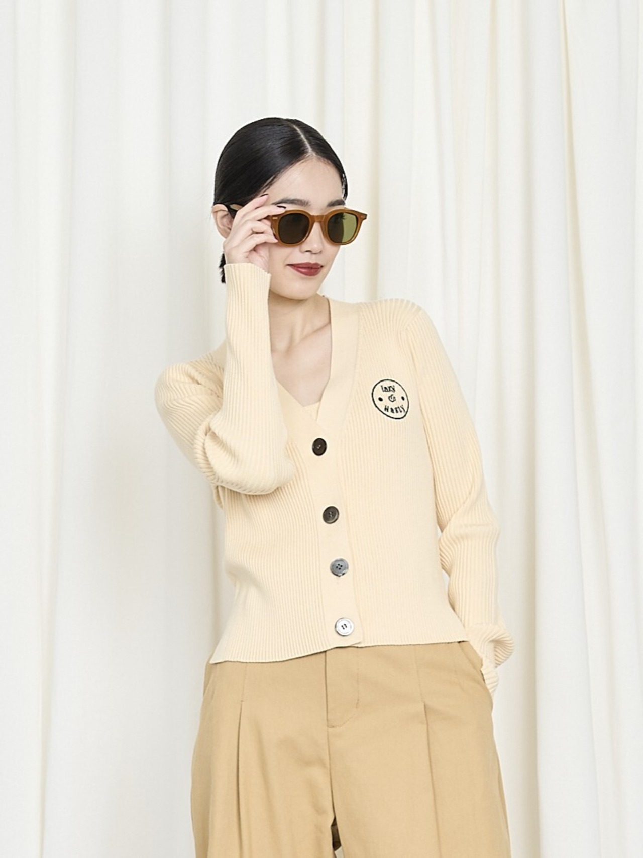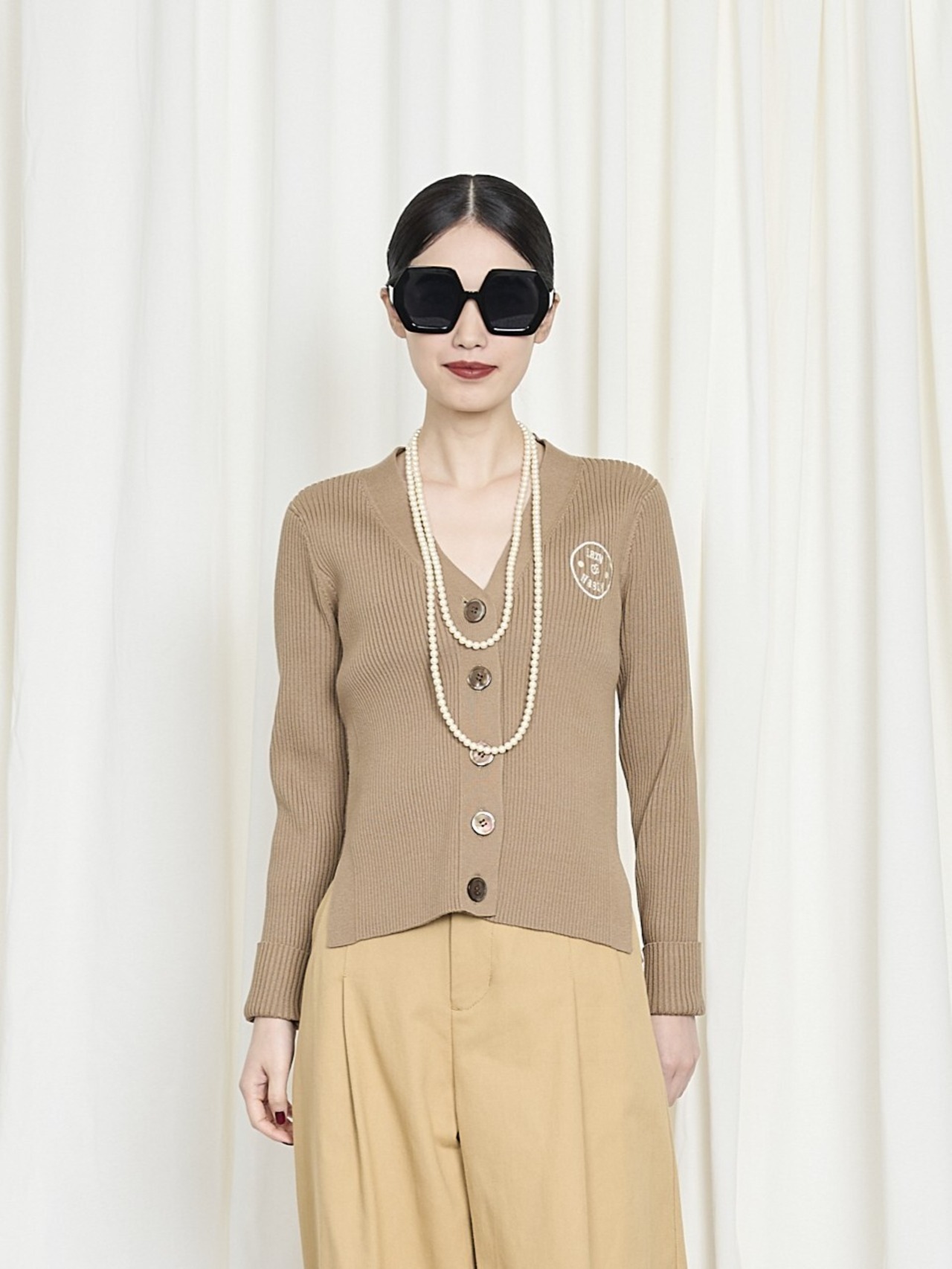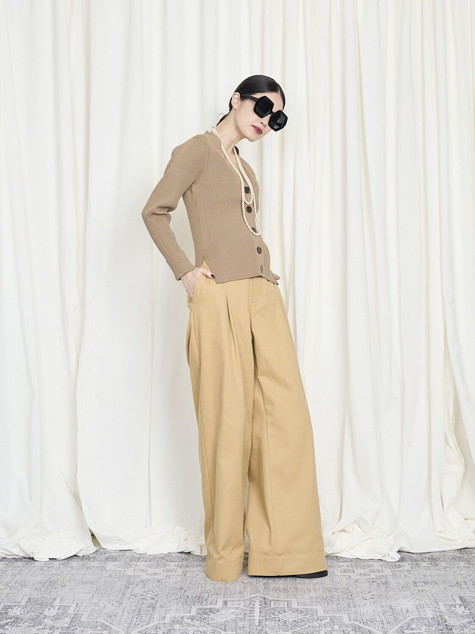 細身に見えてストレッチがすごいリブカーディガン。初の細身Vネックを作ってみました。とても細い方から、ふっくらの方まで着る事ができるカーディガン。1枚でも着用可能でレーヨンポリエステルのサラッとした素材です。程よい肉感があり、しっかりとしています。今回は撮影時にスタッフにもモデルにもとても人気で予約品にピックアップしました。