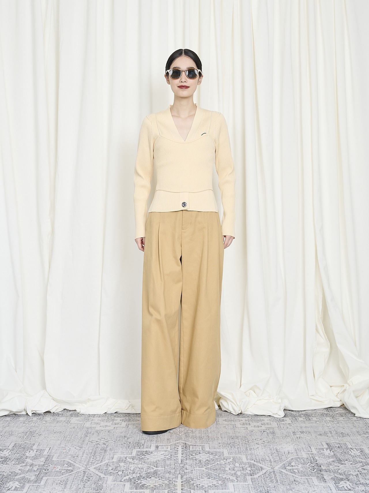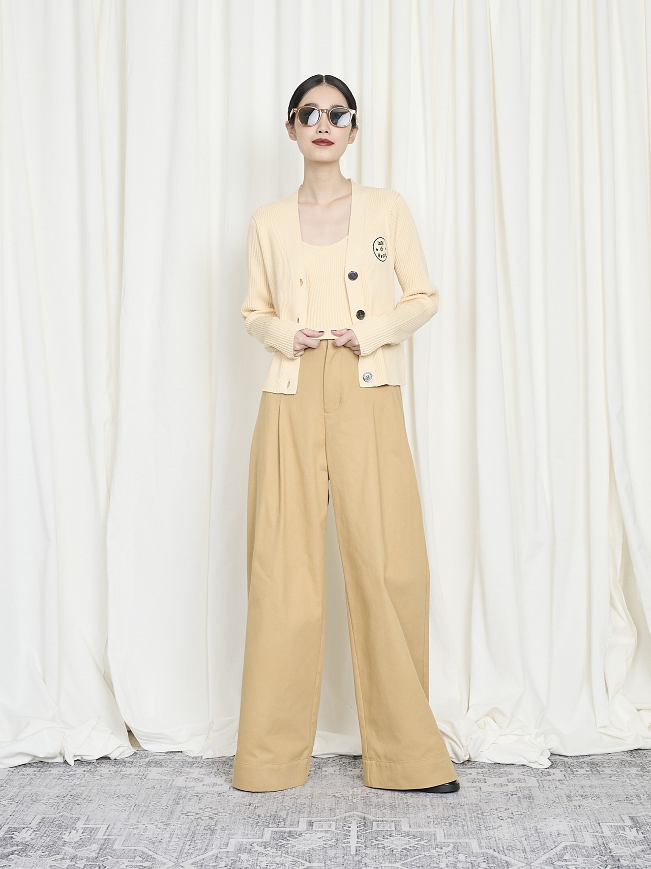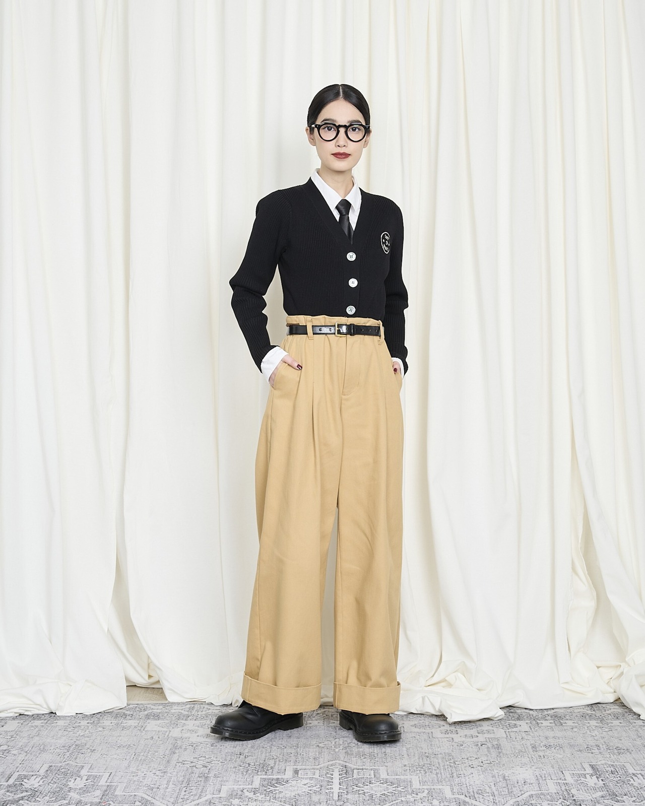 今回はレイジーアンドナースティ。ぐうたらで、家ではやりたい放題の女の子。でも外ではしっかり仕事を遂行できるオンオフのスイッチ変換ができるアンバランスな女の子を想定しました。だらしなさとは裏腹にオンタイムの日に着用するキレイめのニットのイメージです。オフィスで着るのにふさわしいけれど、ロゴにはLAZY AND NASTYのロゴマークが入ります。だらしなさ全開のロゴになっています。(ご注意ください) 着丈はやや短め、腰ハリさんには着にくくないようにサイドにスリットを入れてバランスを取りやすくしています。リブは少し太めでラインが出てほっそりと見える効果があります。お勧めはブラックです。無彩色でビジネスシーンにも合わせやすく便利かもしれません。セーラーカラーの襟に合わせて着る事ができます。またインナーにTシャツを入れても合わせやすくしています。トーマスマグパイの中では少し新鮮なシルエットで夏の終わりから秋にかけて使えるアイテムだと思います。