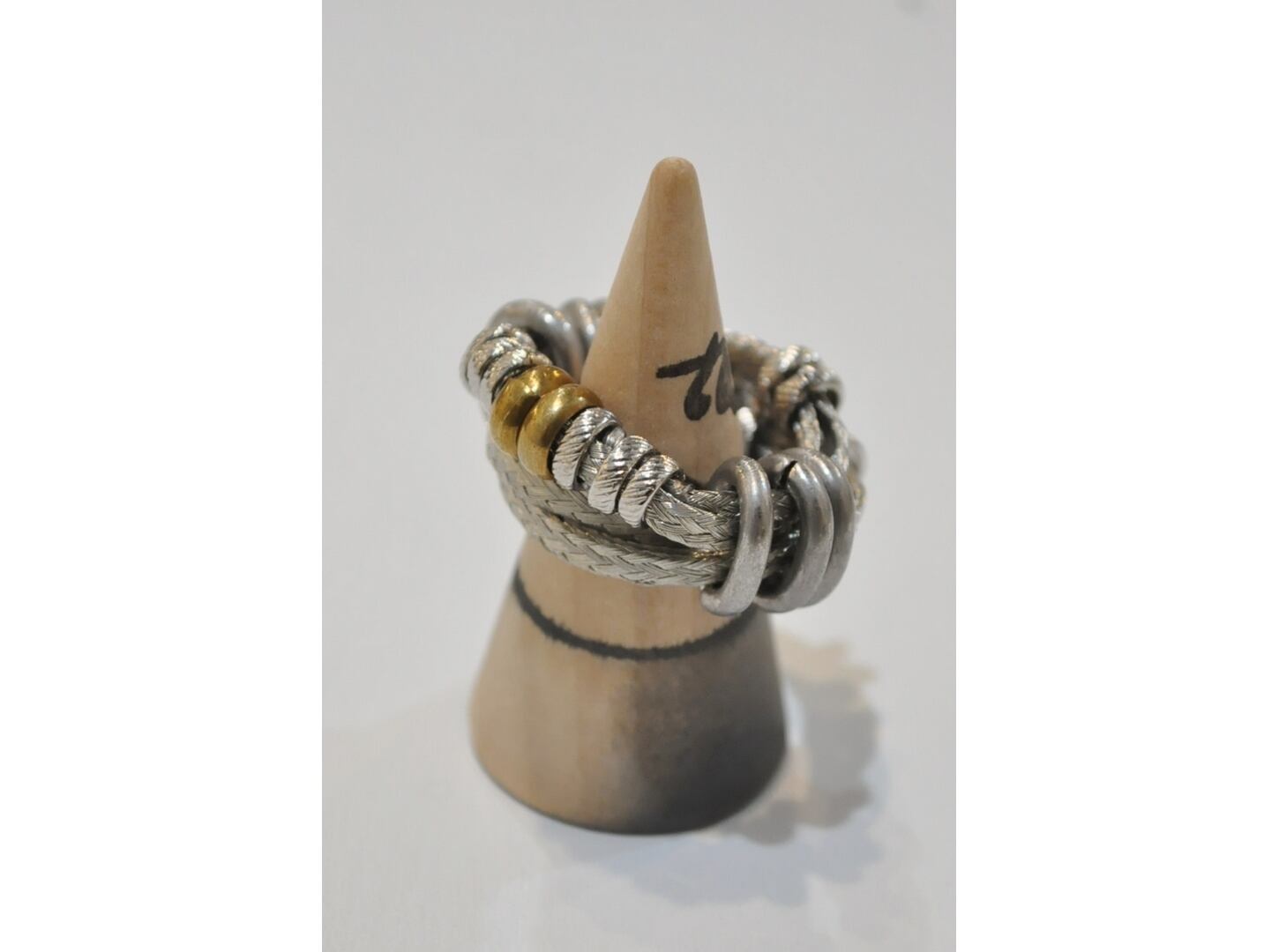 ●錫のワイヤーをブレード状にして、メタルパーツで装飾を施したデザインの一点物のリング。