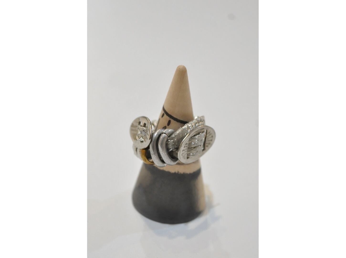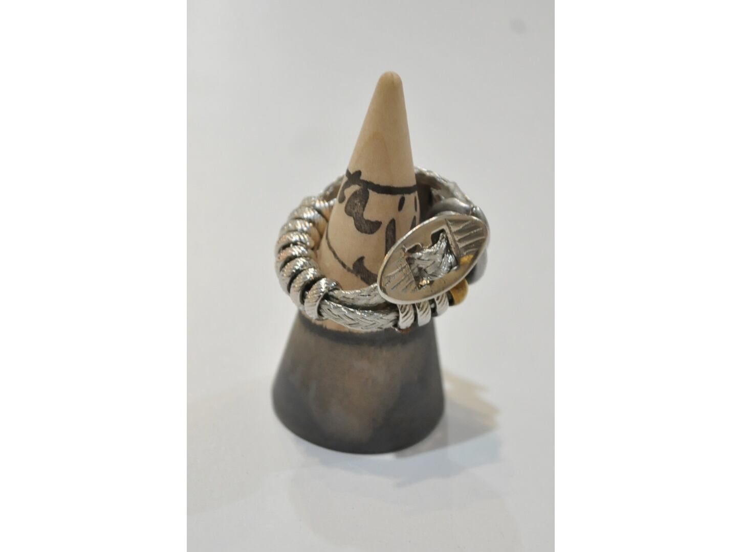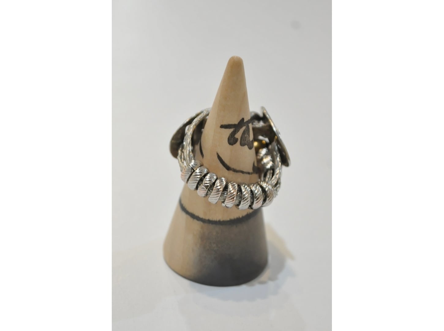 ●錫のワイヤーをブレード状にして、メタルパーツで装飾を施したデザインの一点物のリング。