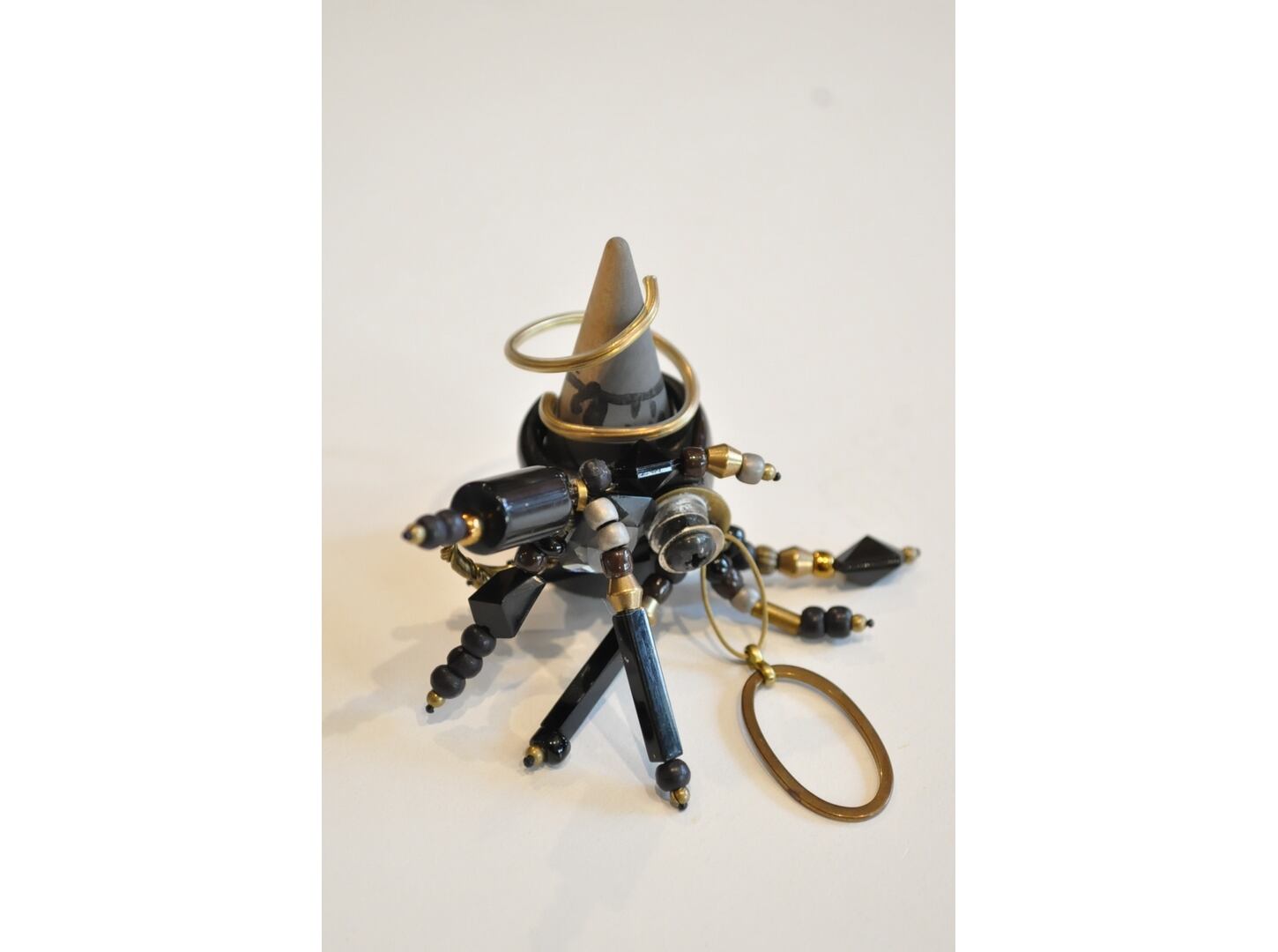 ●ヴィンテージのブラック系パーツやビーズで装飾したリングと真鍮ワイヤーをシュリンクチューブで覆ったリングがセットになった2連リング。