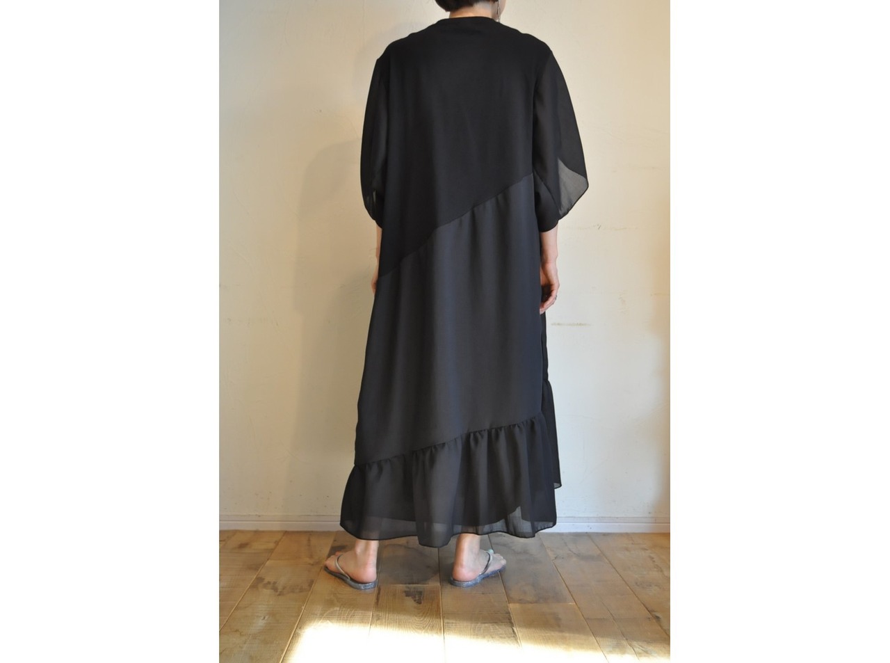 ●コットンのカットソーとシフォンボイルを掛け合わせたドレス。