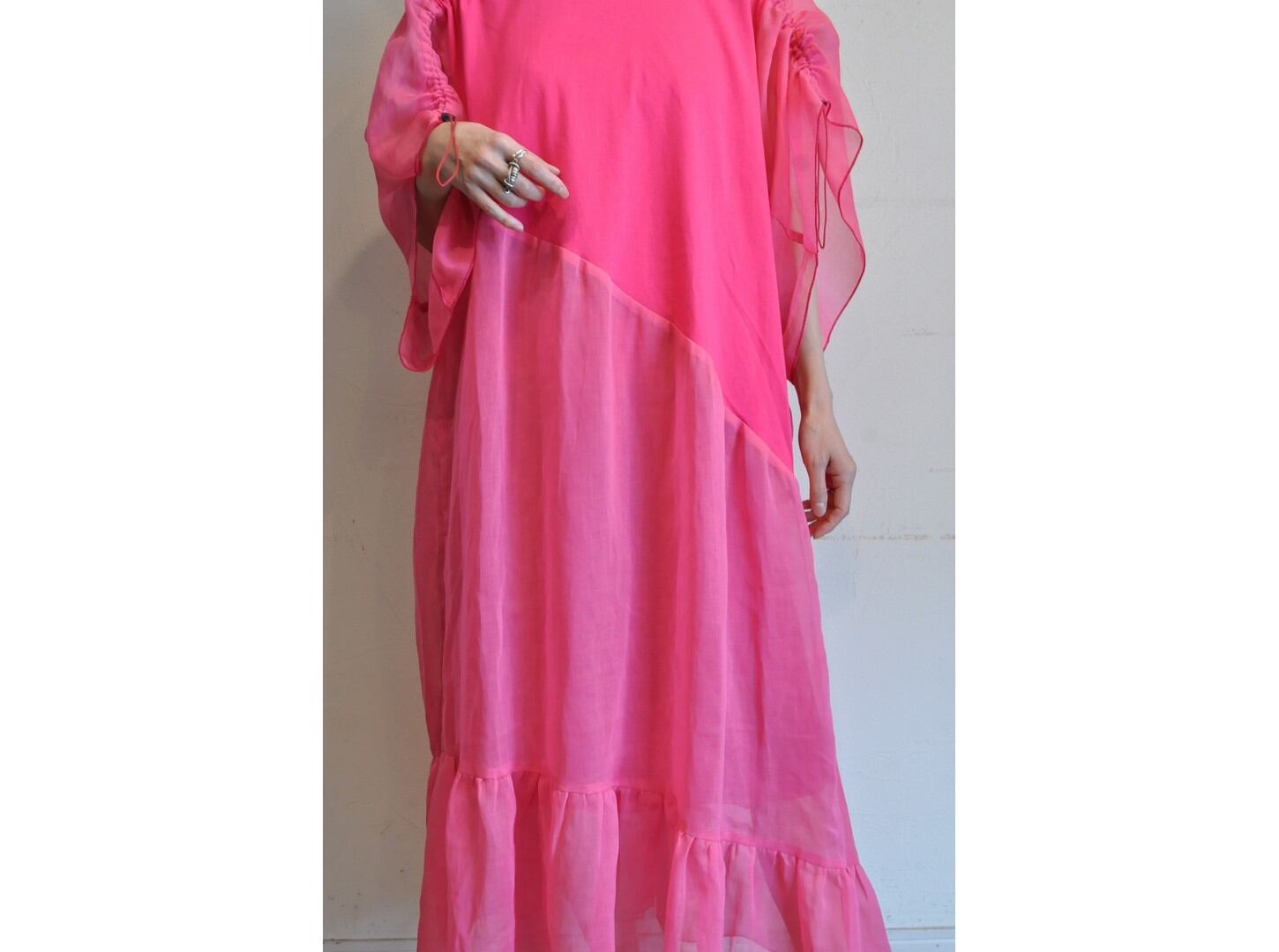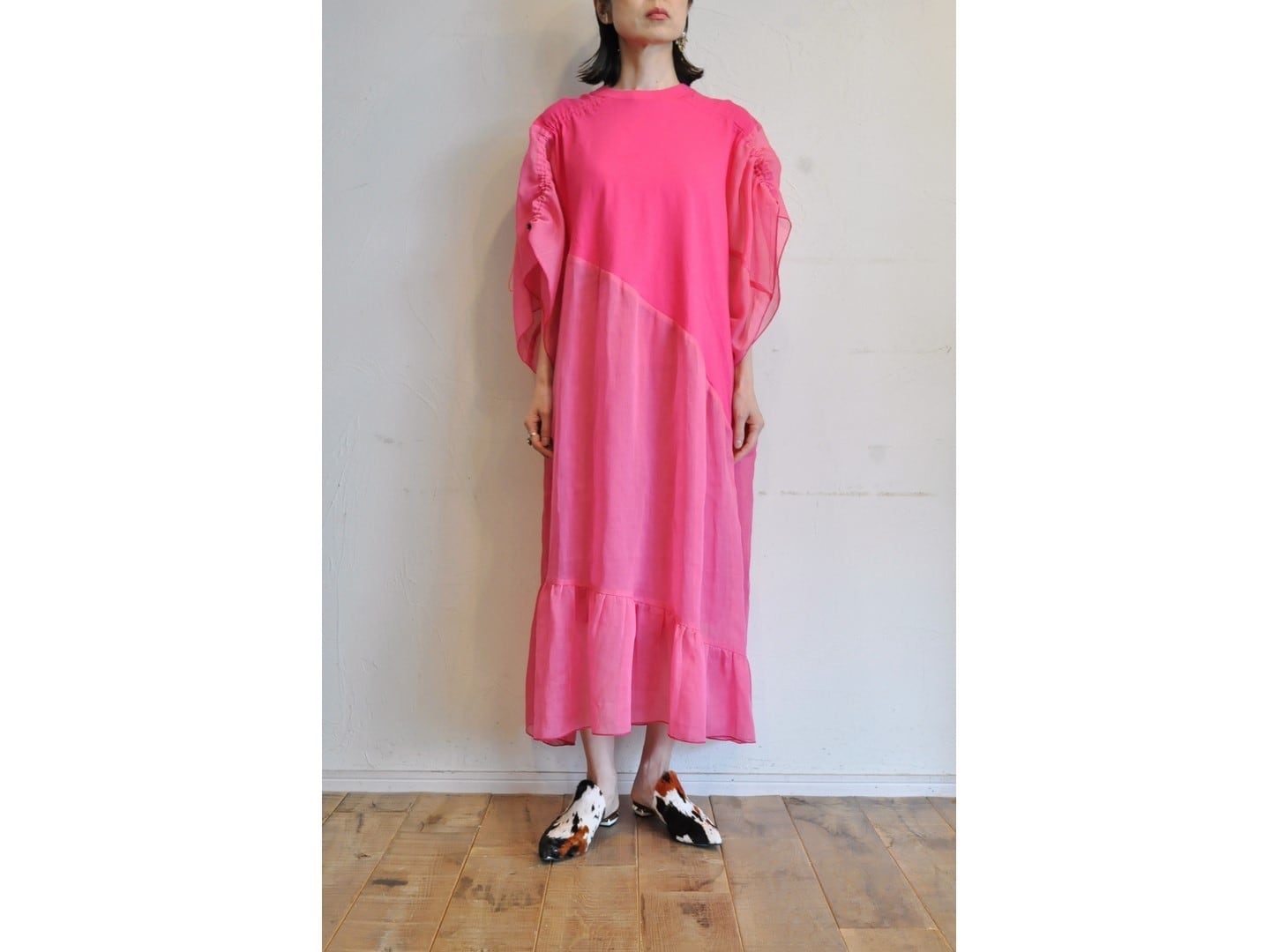 ●コットンのカットソーとシフォンボイルを掛け合わせたドレス。