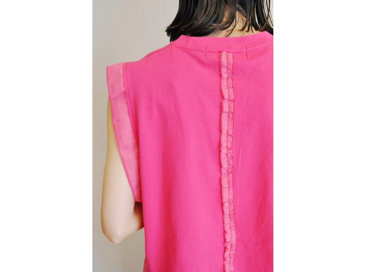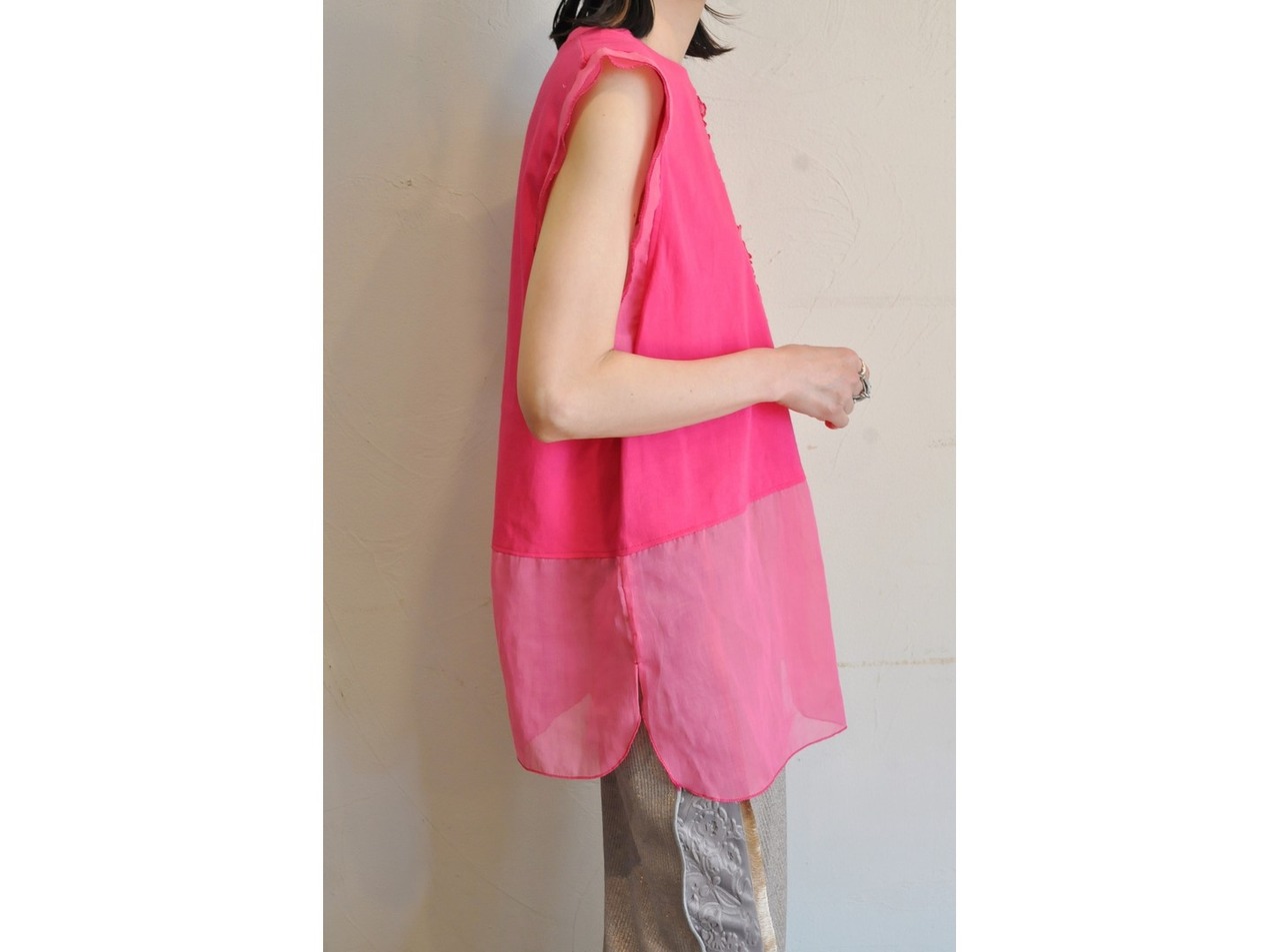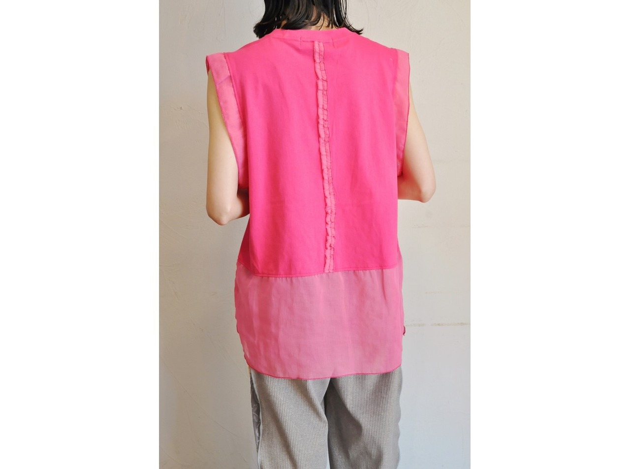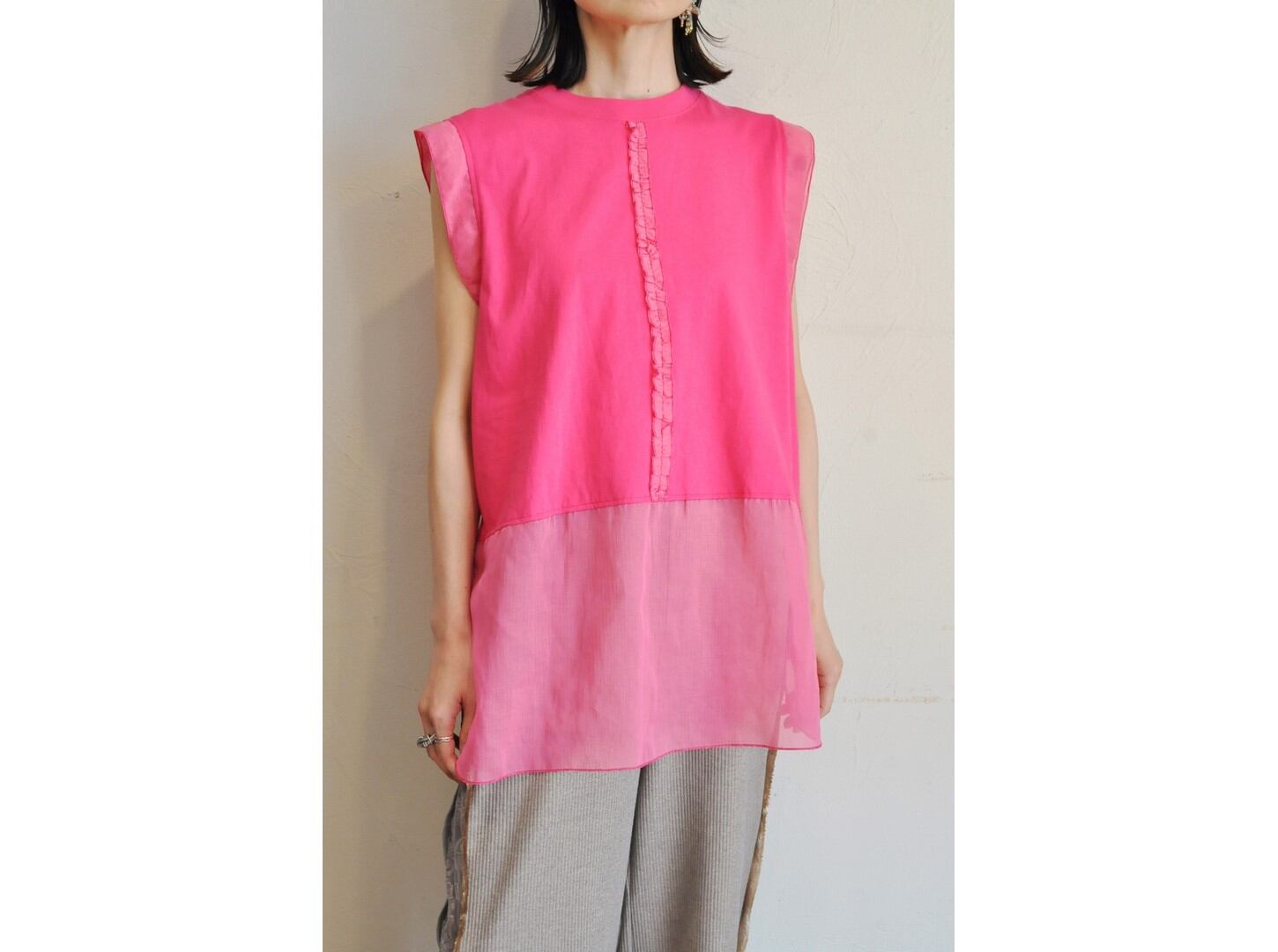 ●コットンのカットソーとシフォンボイルを掛け合わせノースリーブトップス。