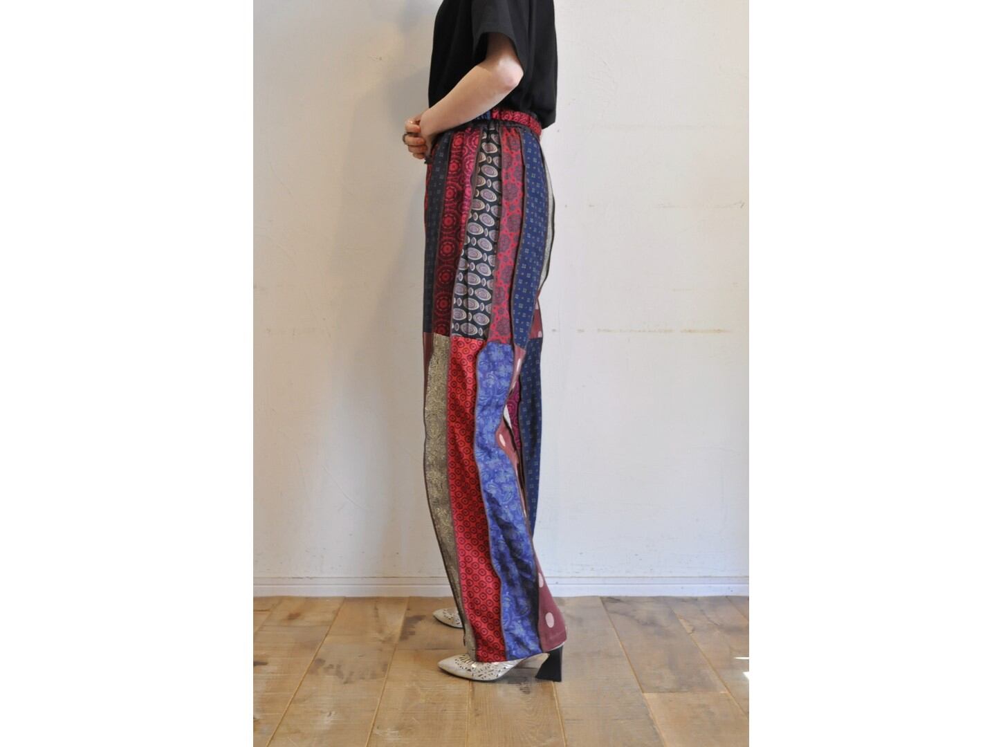 ●ヨーロッパの古着のサテンパジャマをパッチワークして作られたリメイクパンツです。