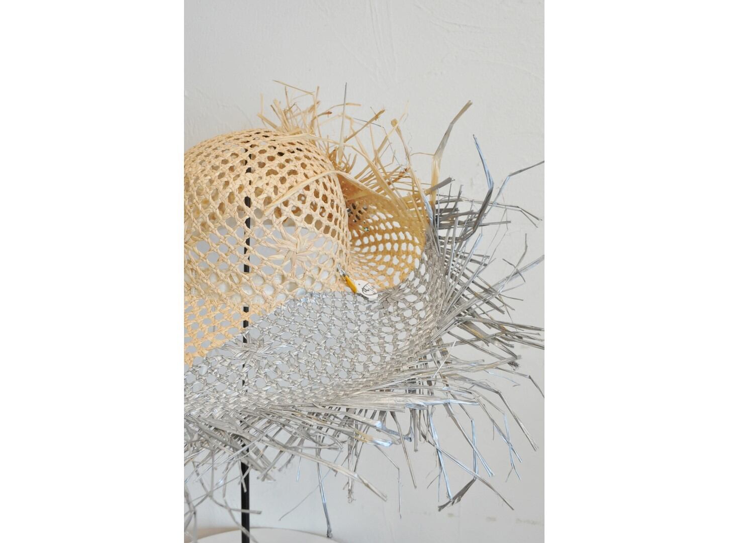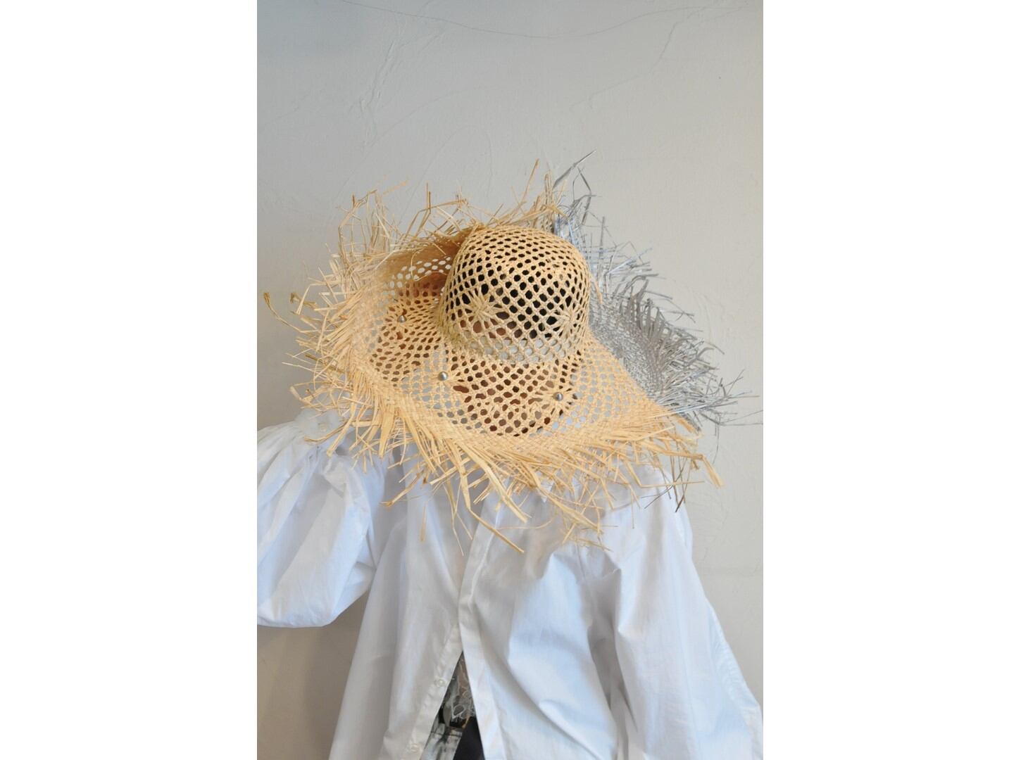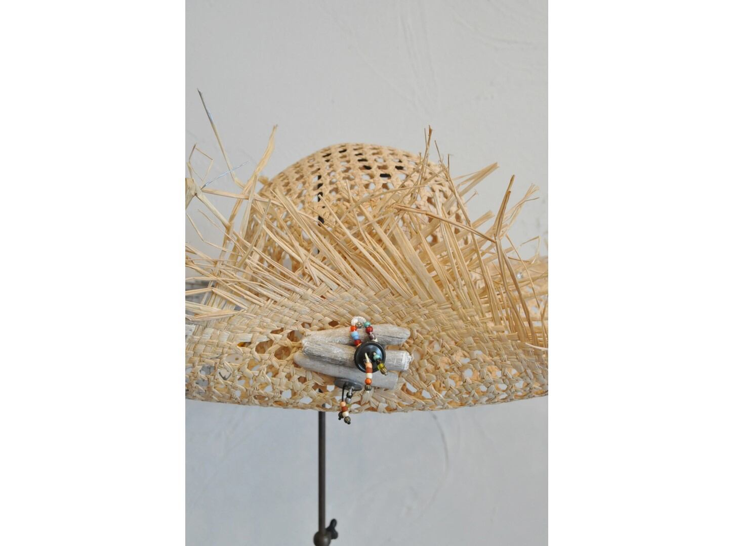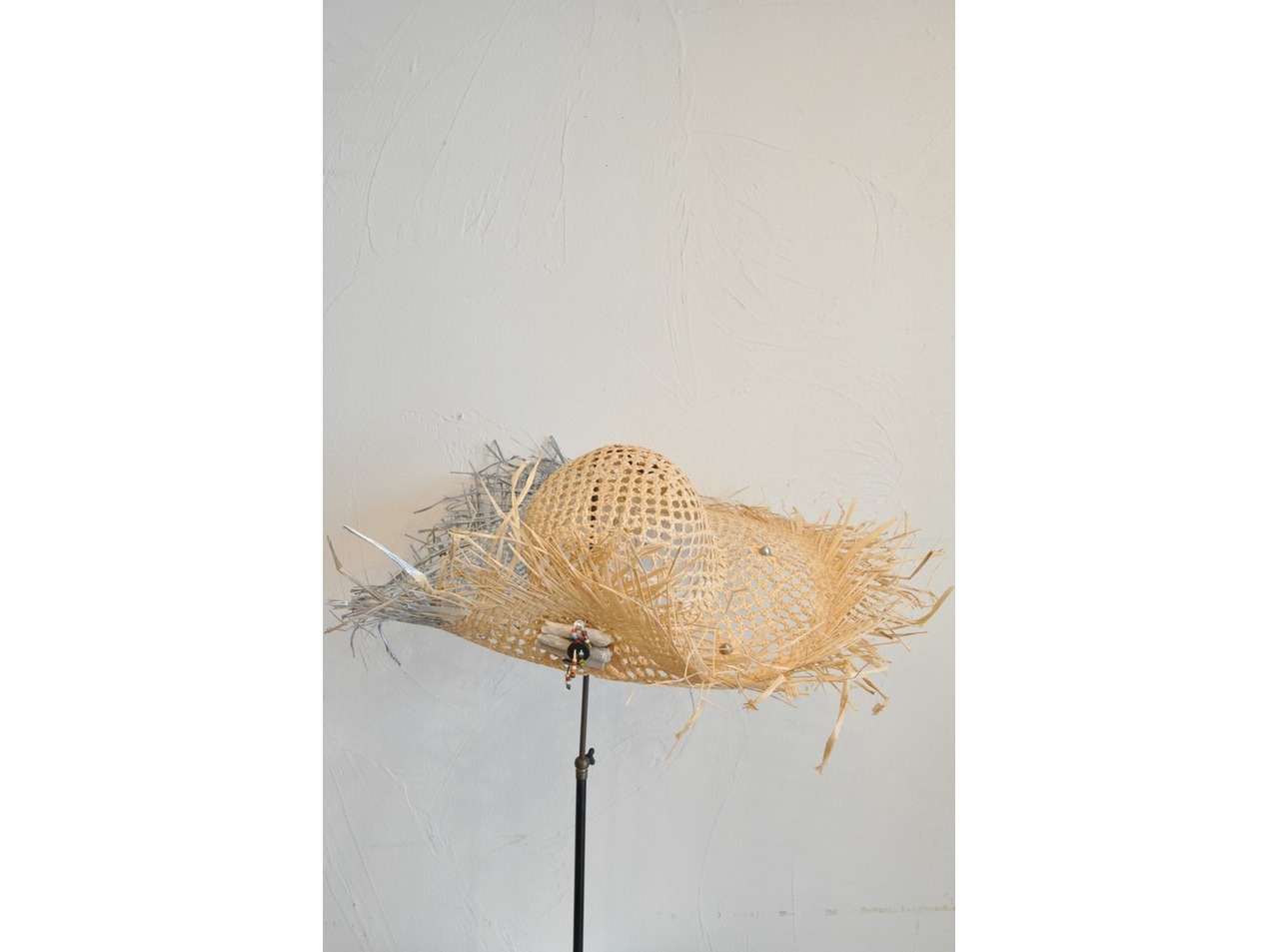 ●ヴィンテージのメタルパーツやボタン、ビーズ等を装飾に用いた一点物のストローハット。