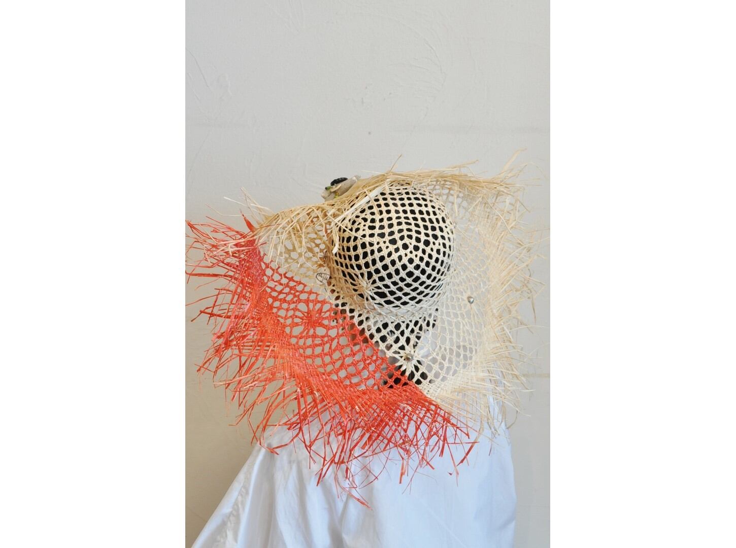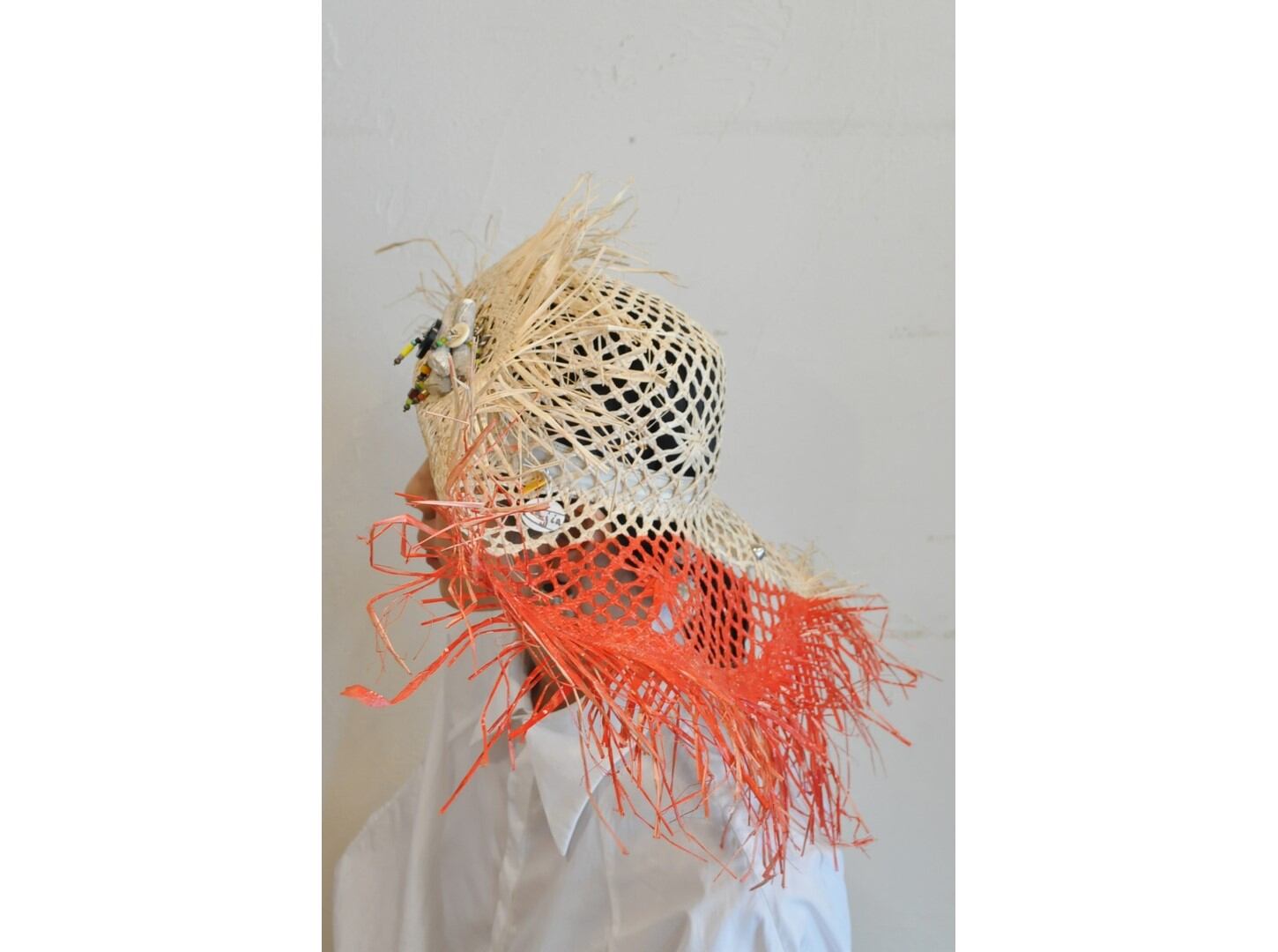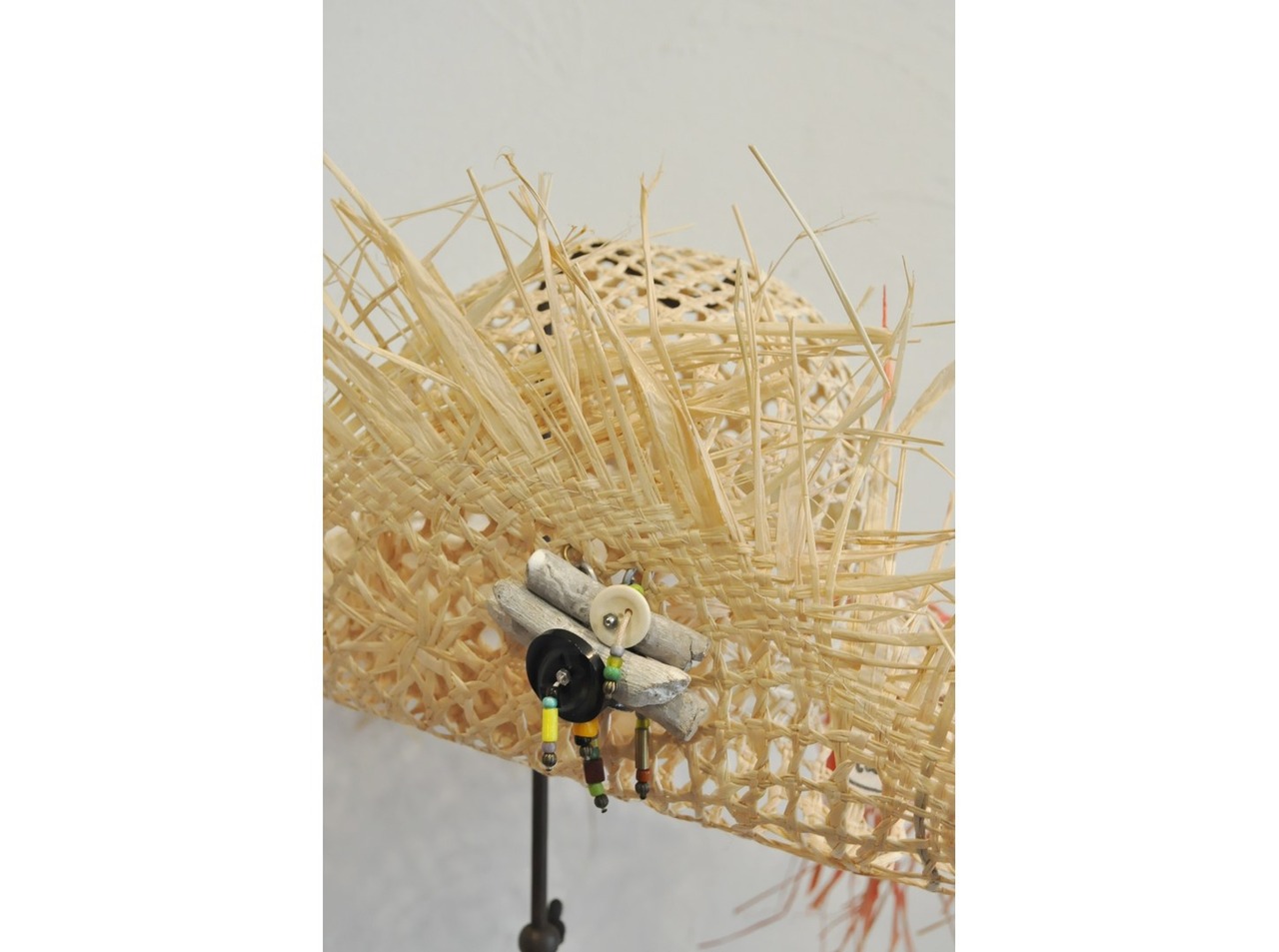 ●ヴィンテージのメタルパーツやボタン、ビーズ等を装飾に用いた一点物のストローハット。