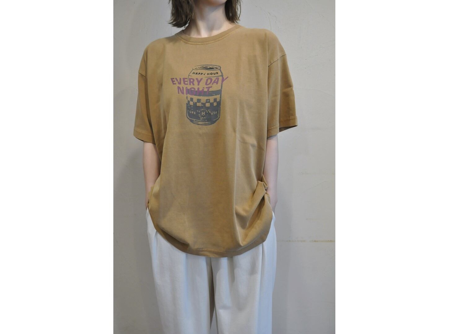 程よいゆるさがあり、プリント後、製品染めをするため着古したような雰囲気に仕上げています。