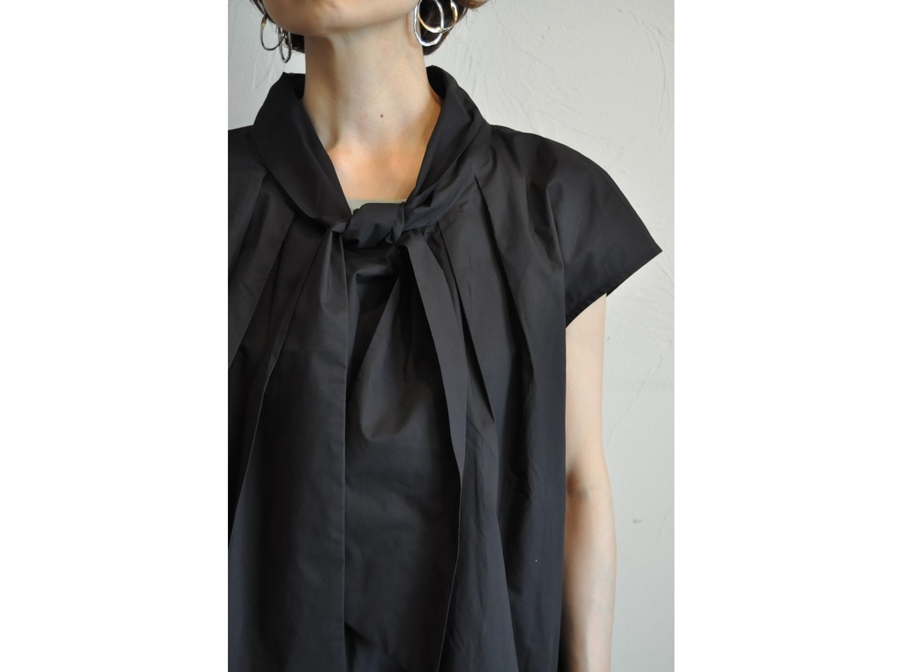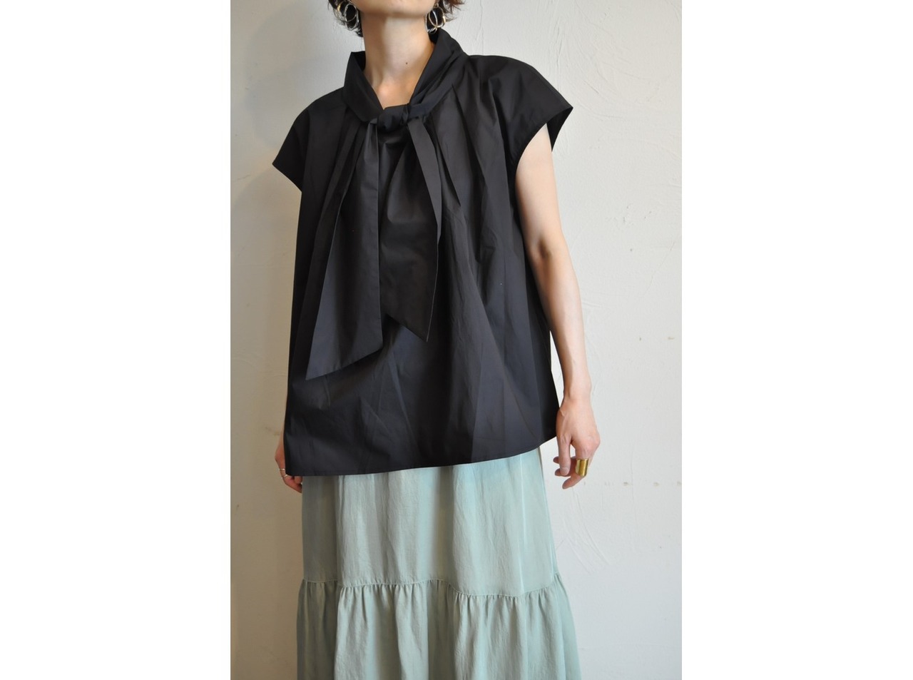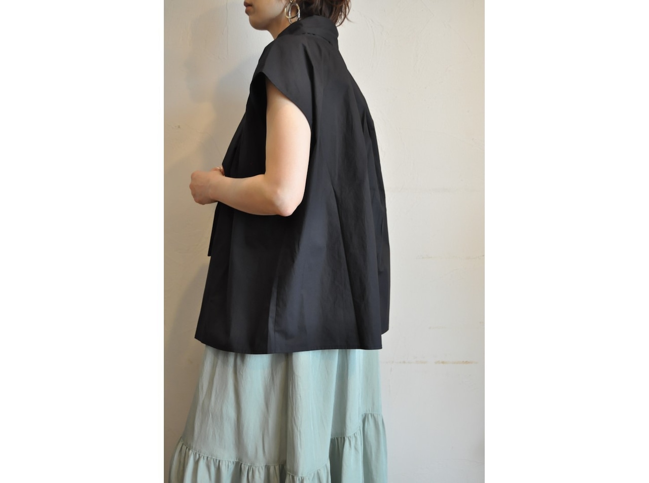 ●綿タイプライター素材を使用した、ランダムタックが特徴的なノースリーブブラウス。