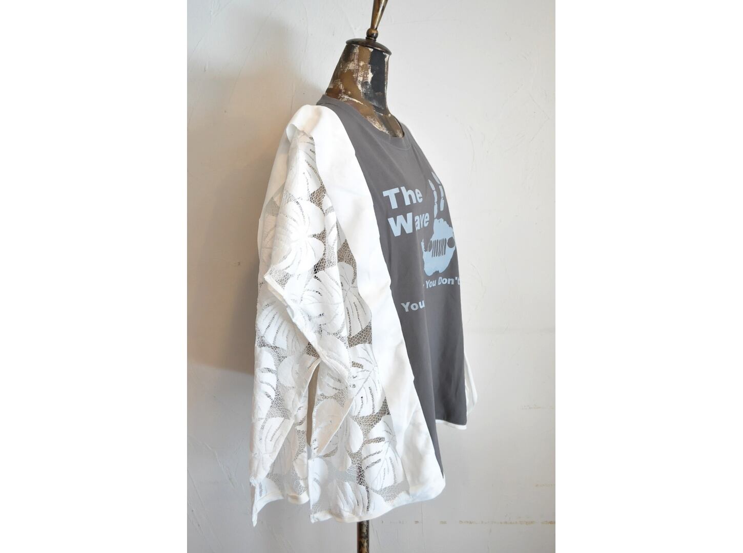 ●ユーズドのTシャツをベースにレースとの掛け合わせでリメイクしたアイテム。