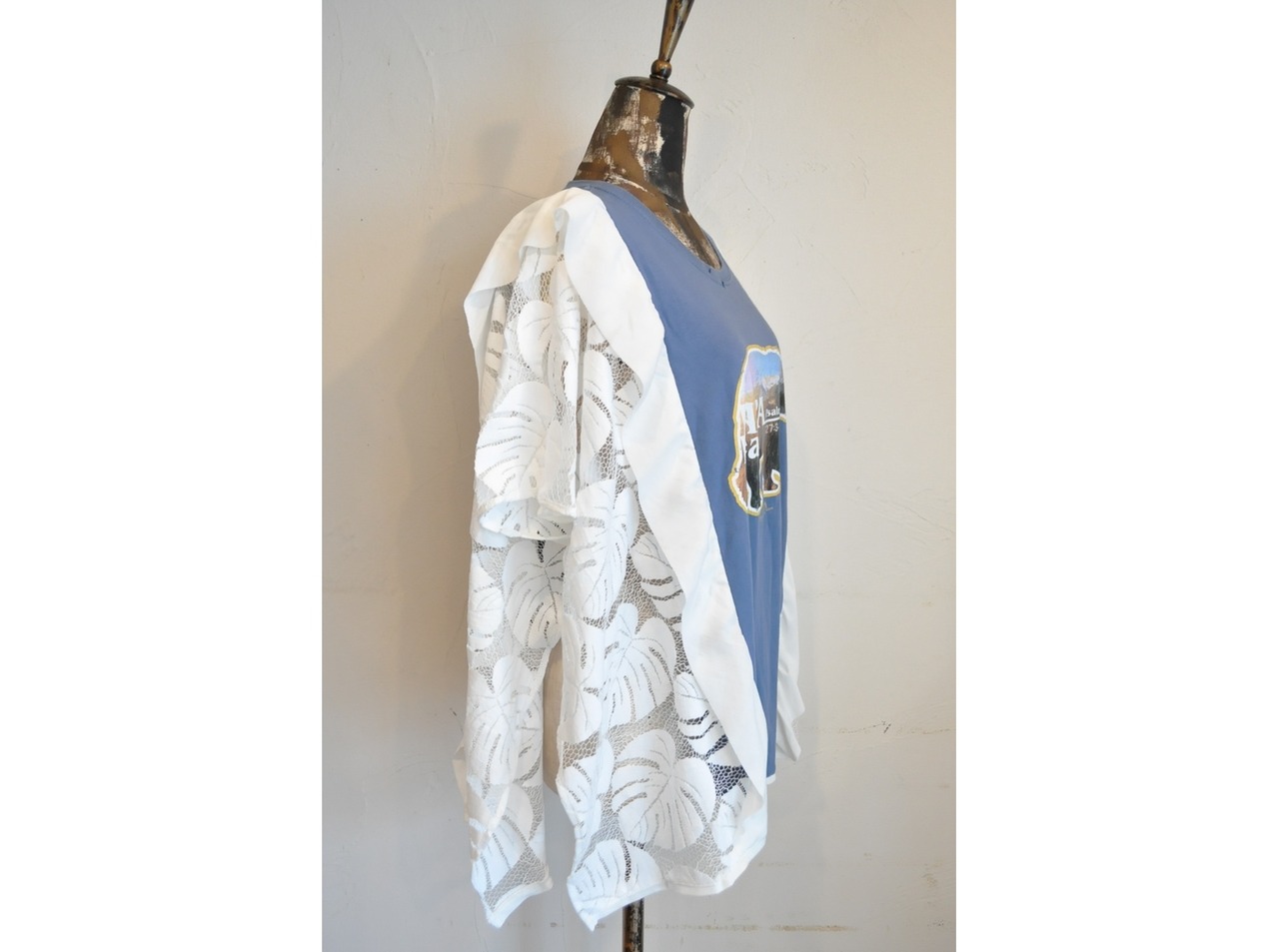 ●ユーズドのTシャツをベースにレースとの掛け合わせでリメイクしたアイテム。