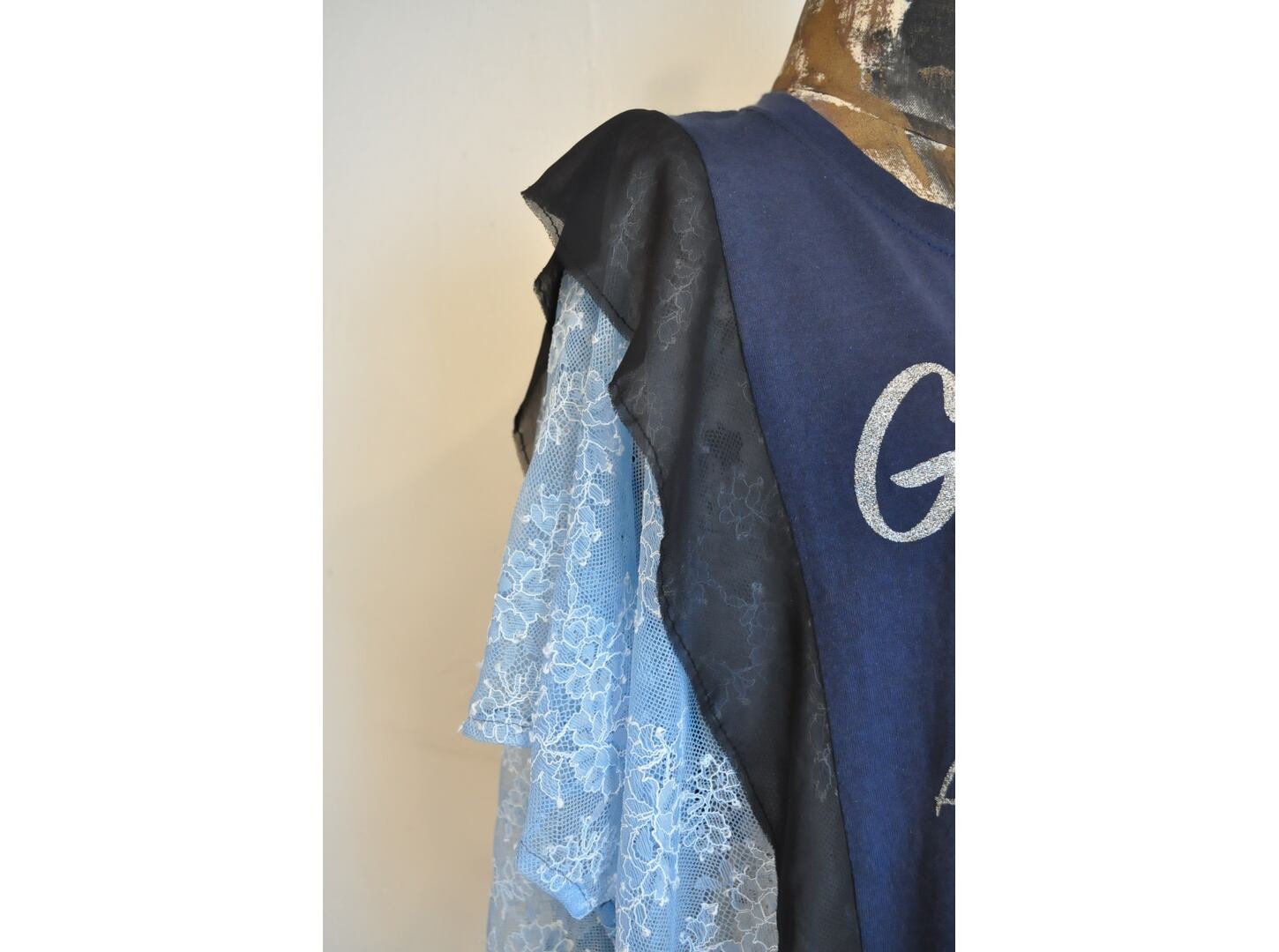 ●ユーズドのTシャツをベースにレースとの掛け合わせでリメイクしたアイテム。
