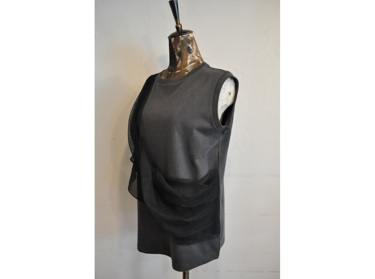 ●ヴィンテージライクな生地にフェミニンなディティールが馴染んだデザインタンクトップ。