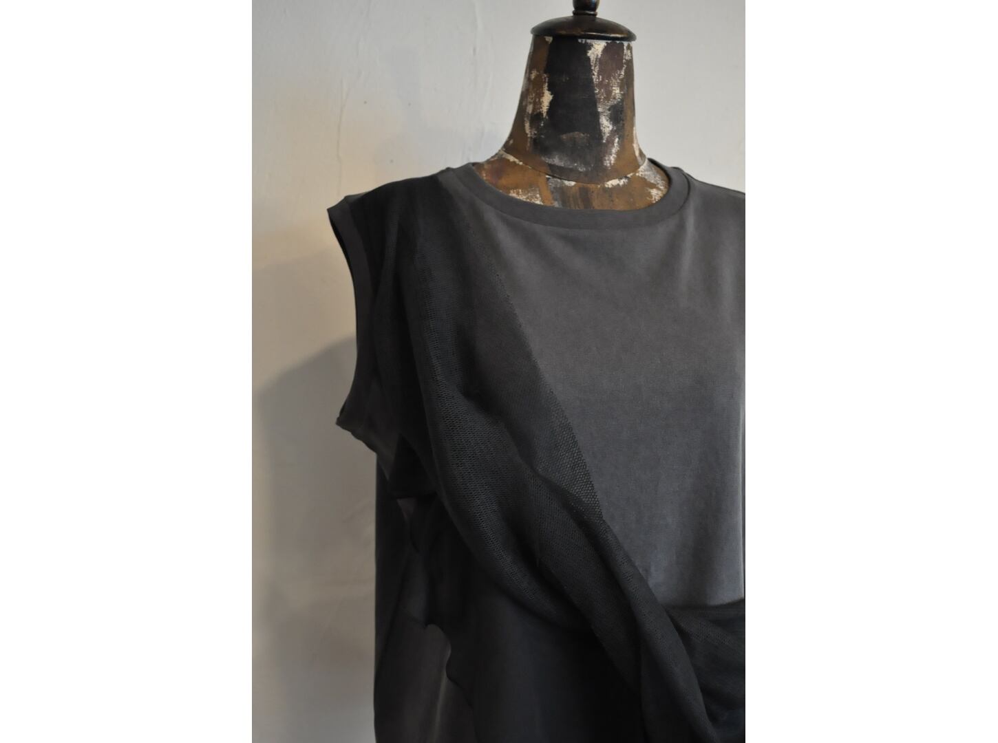ピグメント加工特有のヴィンテージ感のある生地に異素材の装飾を施し、ワイルド感とフェミニンをうまく統合させた1枚です。