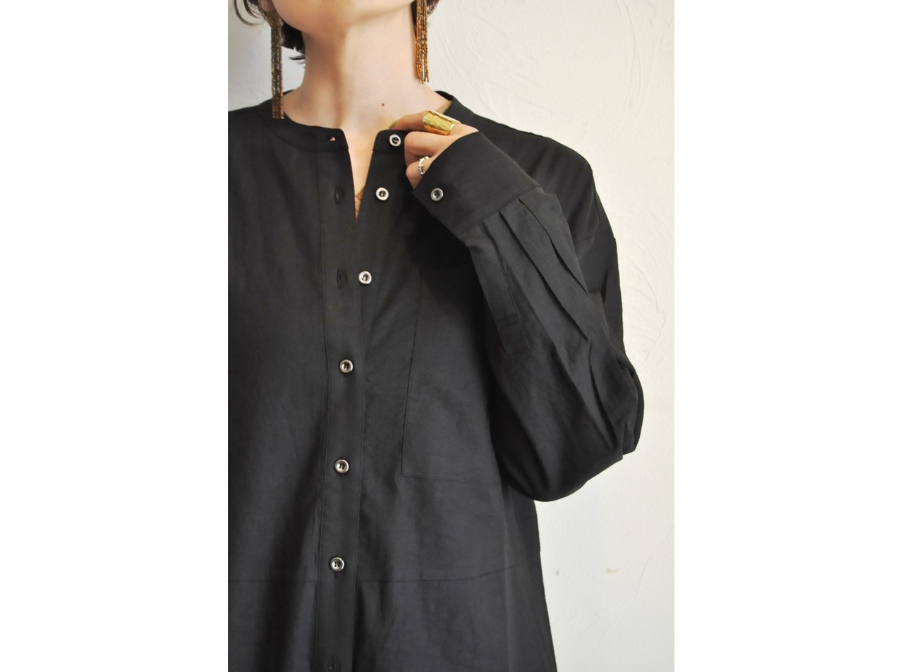 シャツのようなデザインで、ボタンがフロントに並び、袖口もボタンで調整可能です。