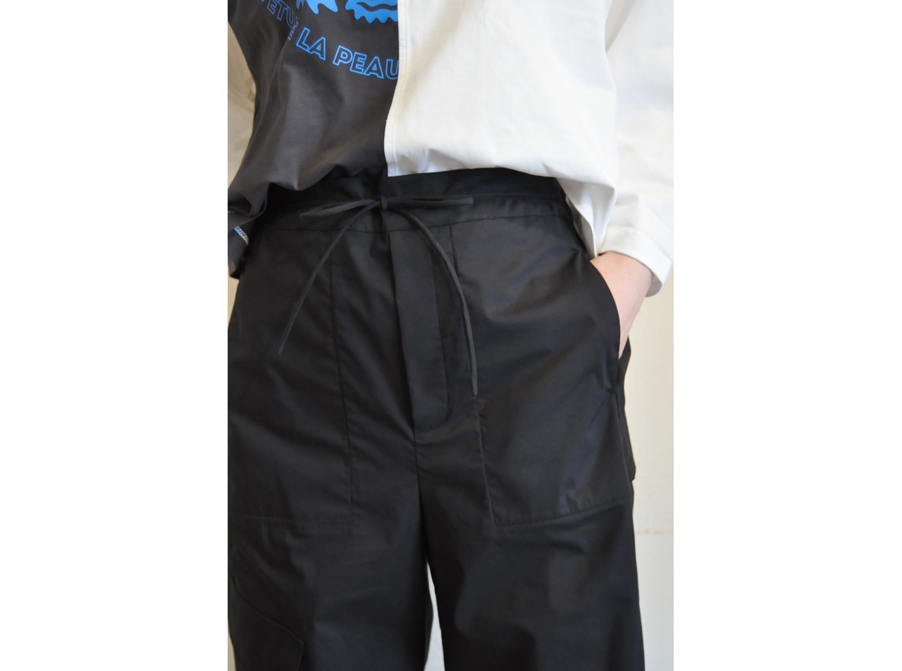 ●後ろのマチつき片玉縁ポケットの仕様と片側に付いた斜めのパッチポケットがポイントのパンツ。