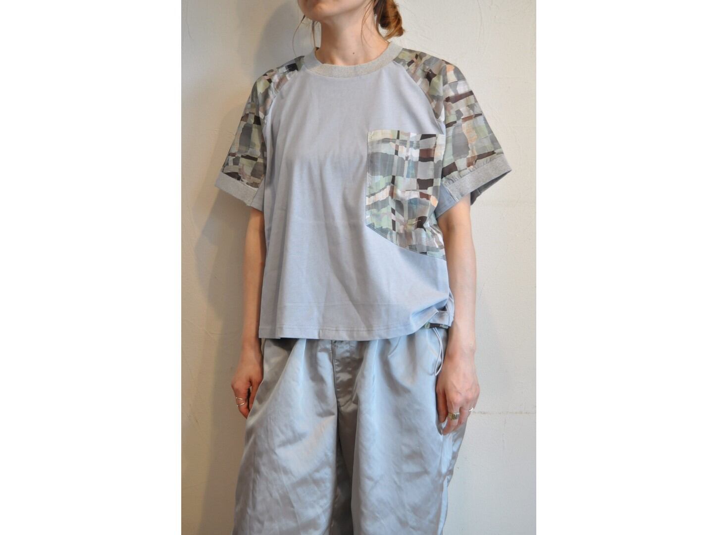 カットソーと布帛の組み合わせで、アウトドアアイテムのような雰囲気を持たせています。