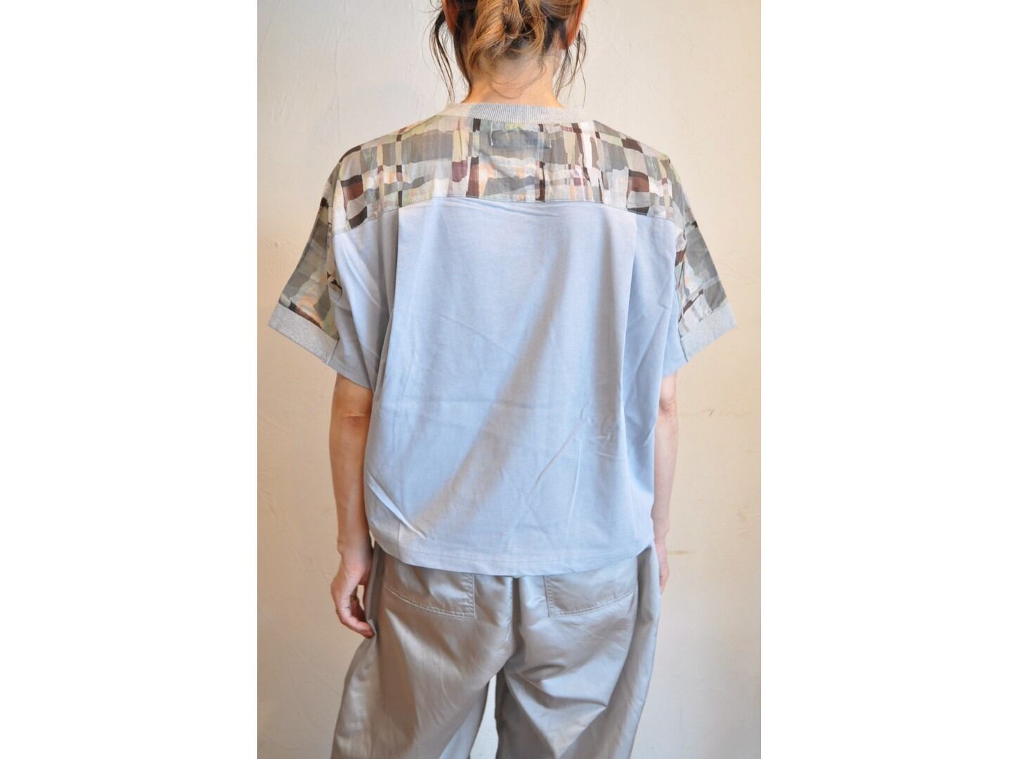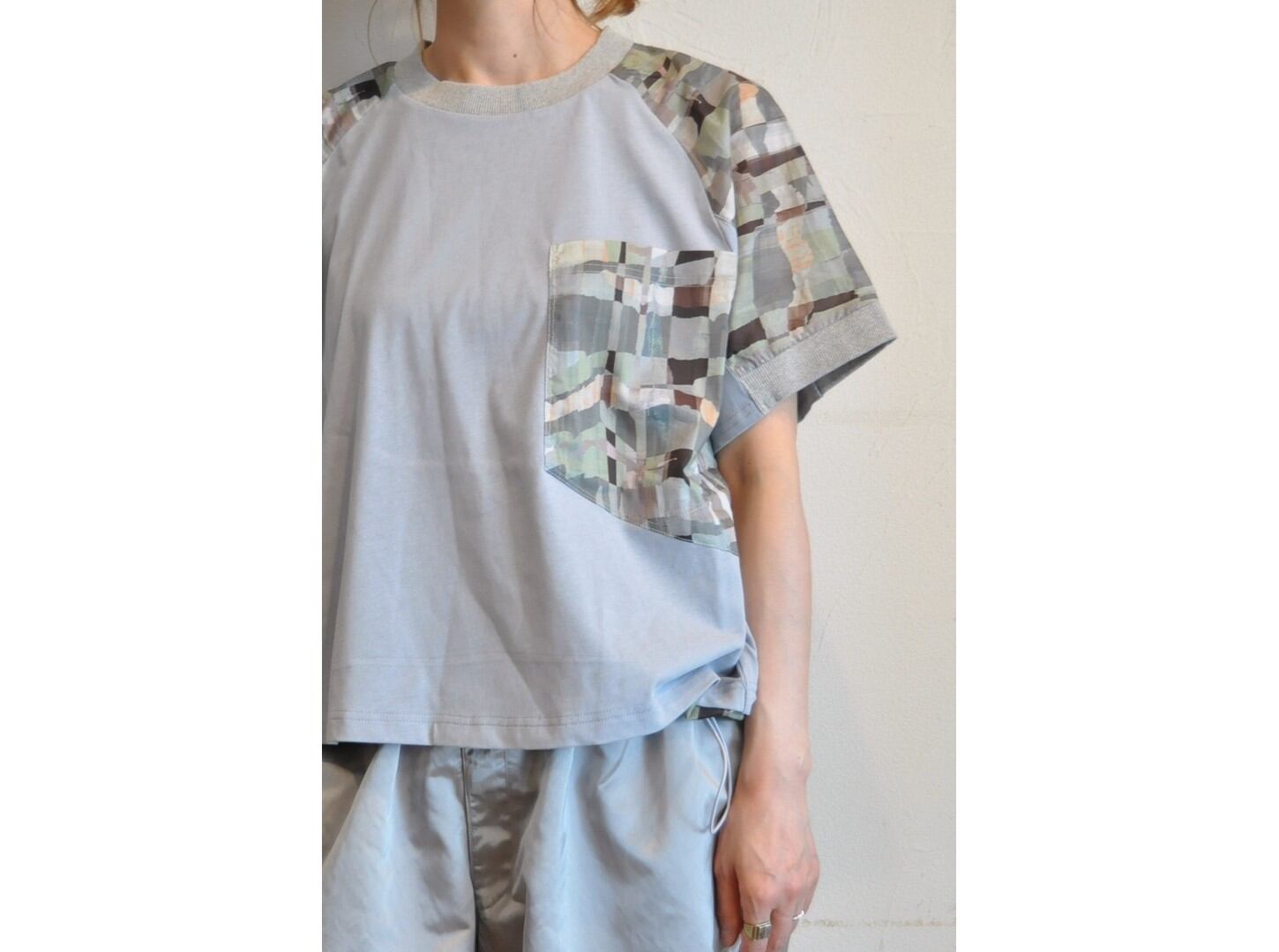 ●不規則なチェック柄をカモフラージュのようなイメージ配色にしたオリジナルプリントを使用したデザインカットソーです。