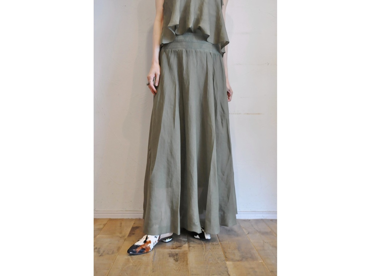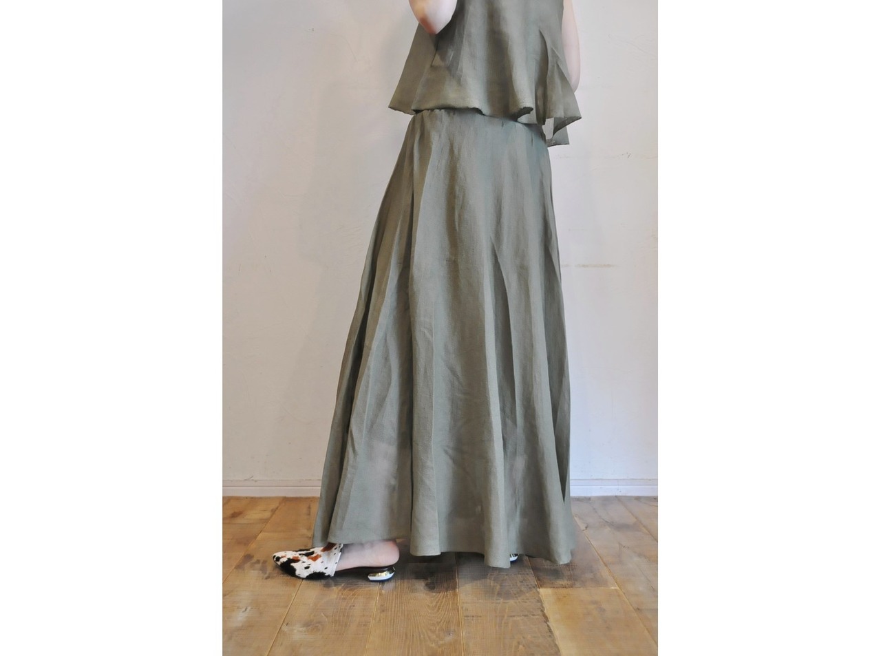 広がり過ぎないシアードレープが動くたびに軽やかに優雅に揺れて女性らしさが引き立つスカートです。