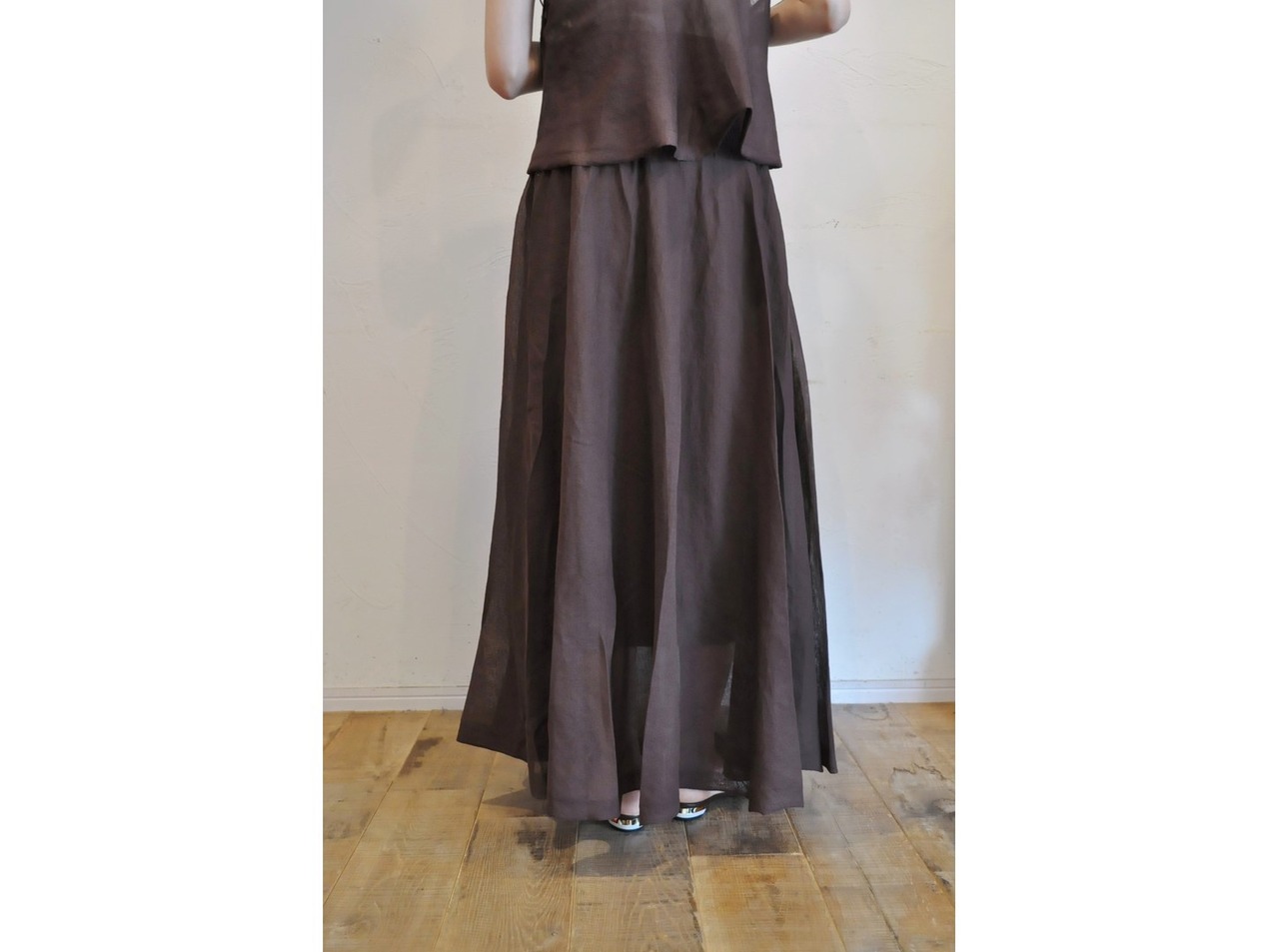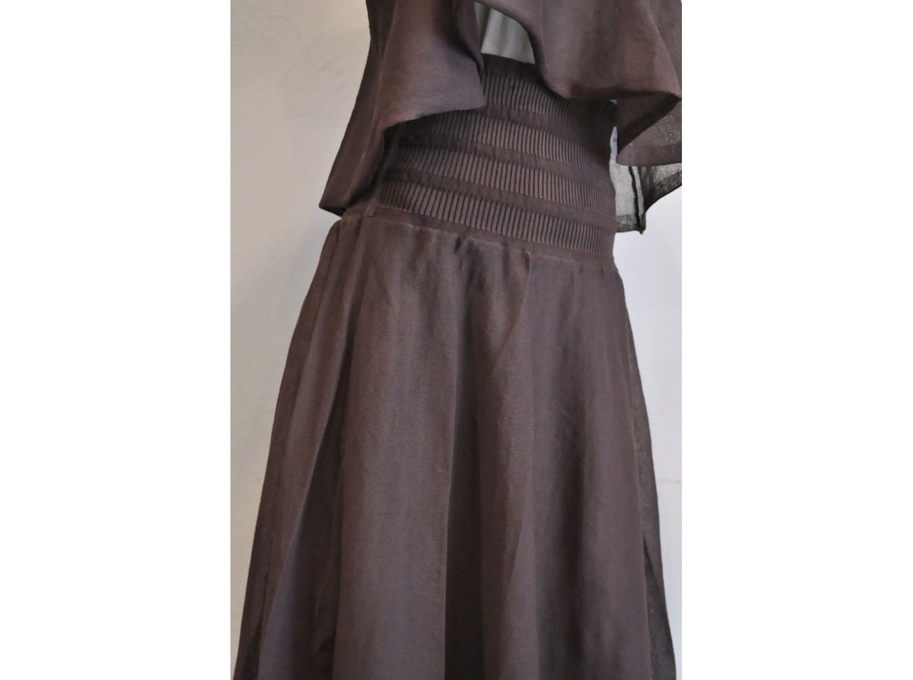 裏地スカートが縫い付けてあり、シアー素材でも透けません。