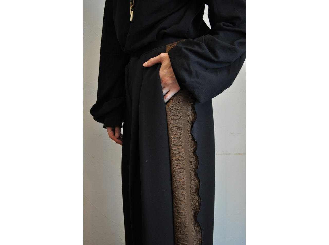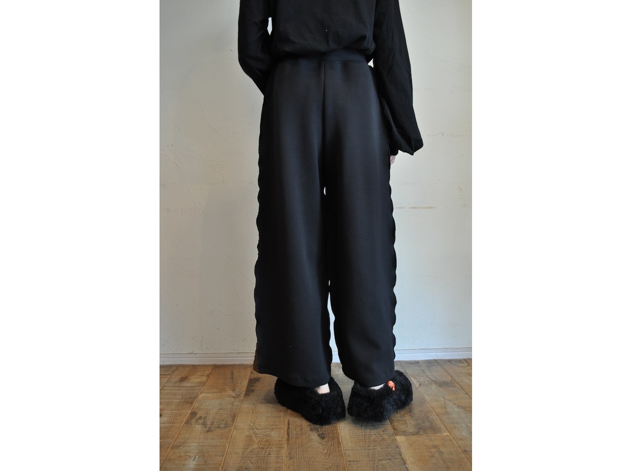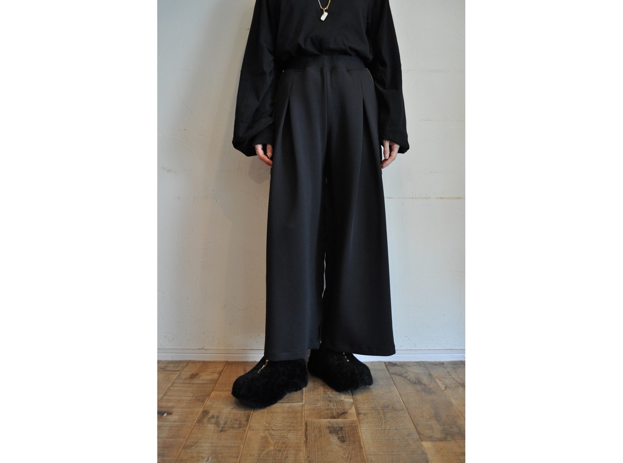 ●膨らみとボリュームのあるダンボール素材のストレッチワイドパンツです。