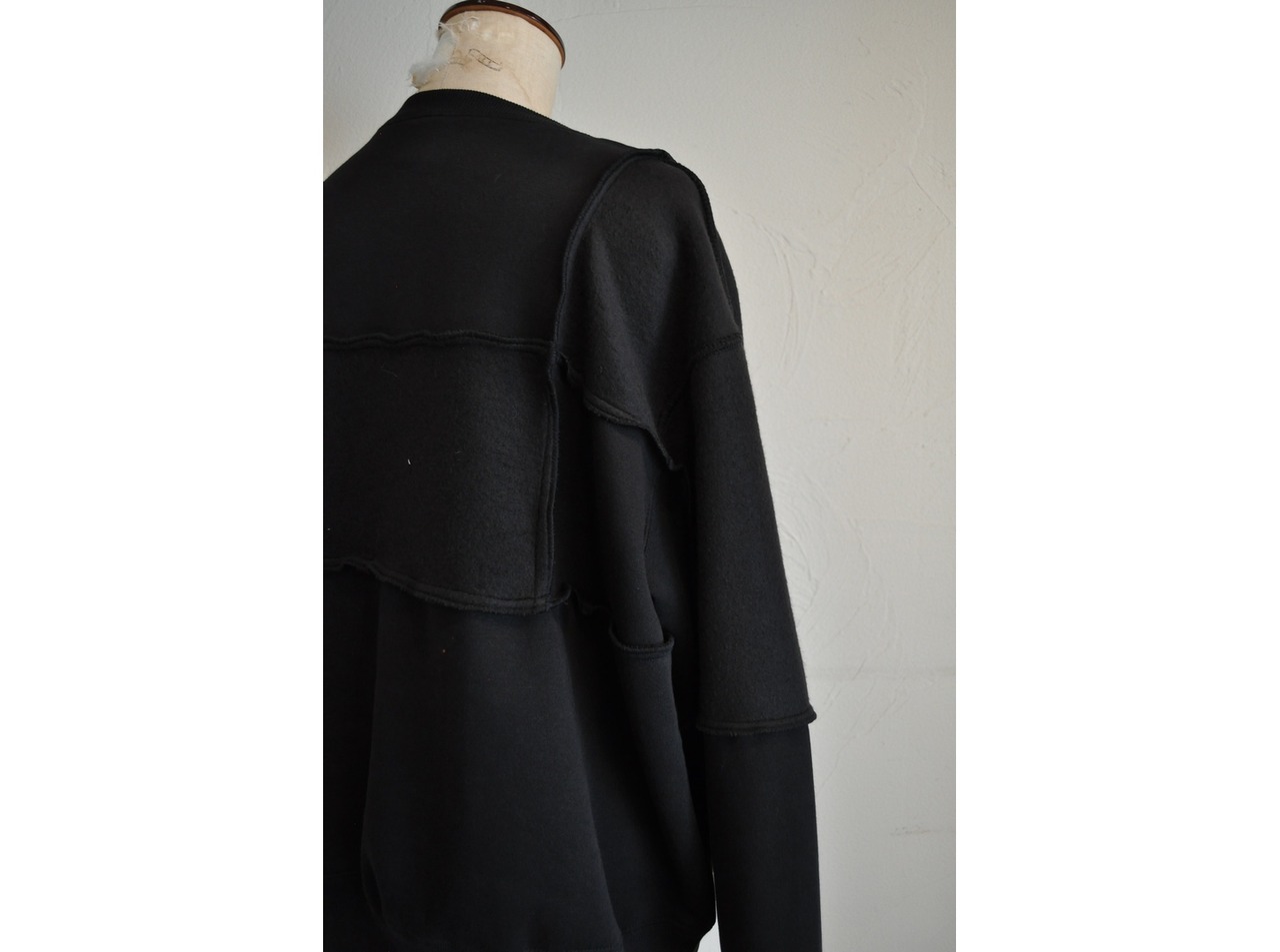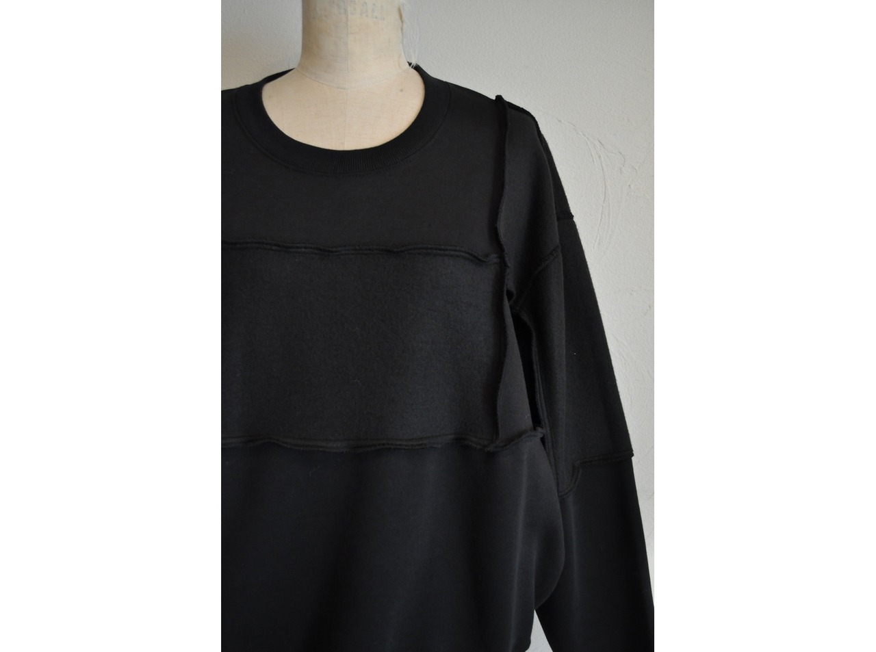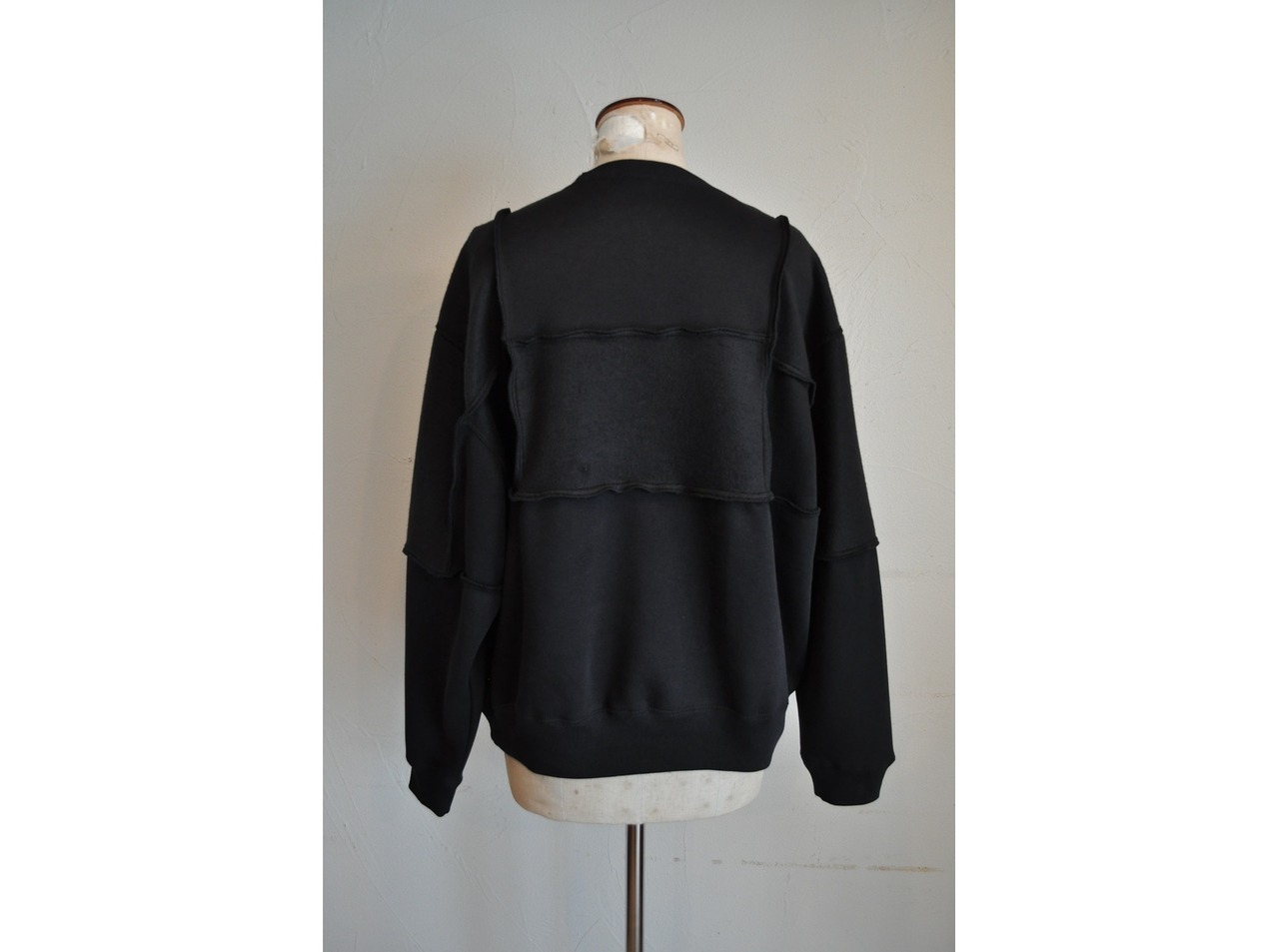 ●裏起毛のスウェットをパネルでカットし、表地と裏地が互い違いに組み合わされた、シンプルながらも立体感のあるプルオーバーです。
