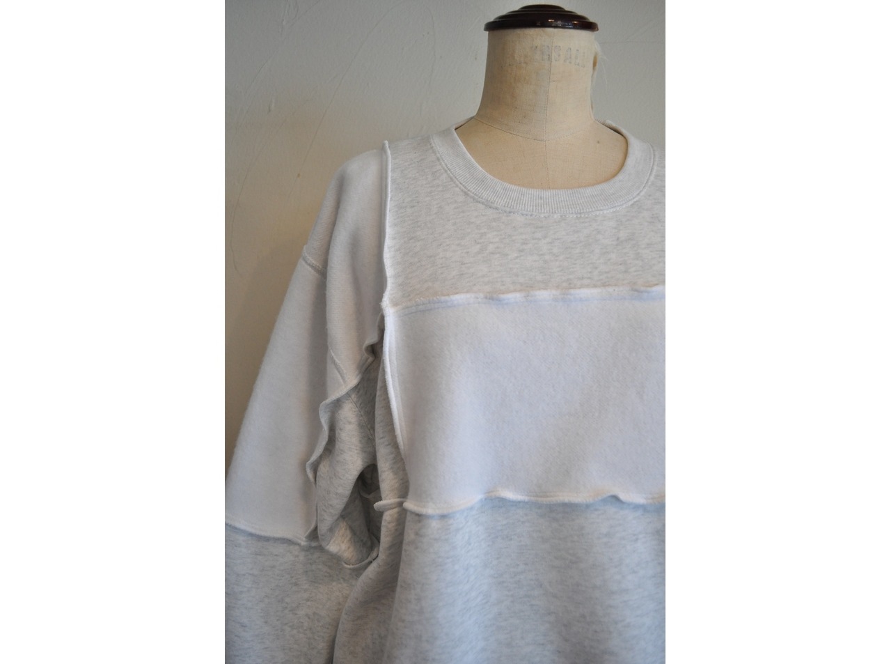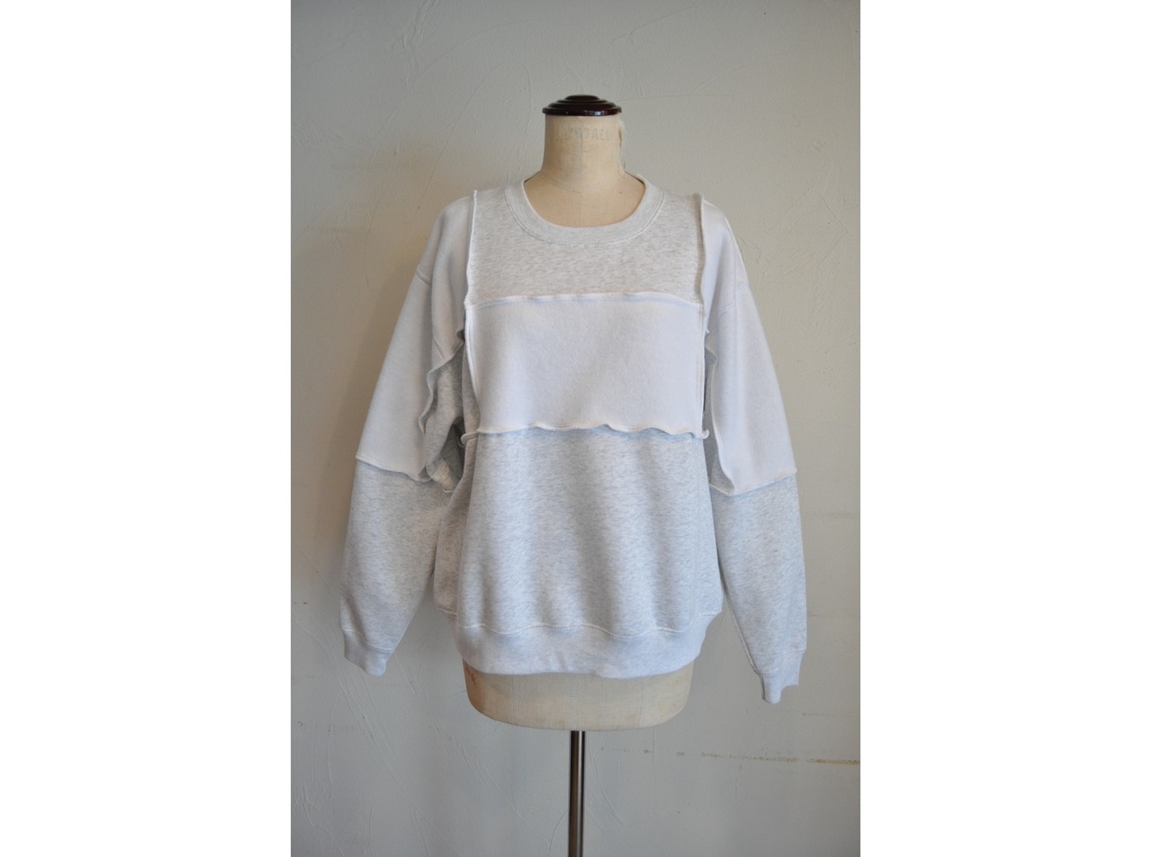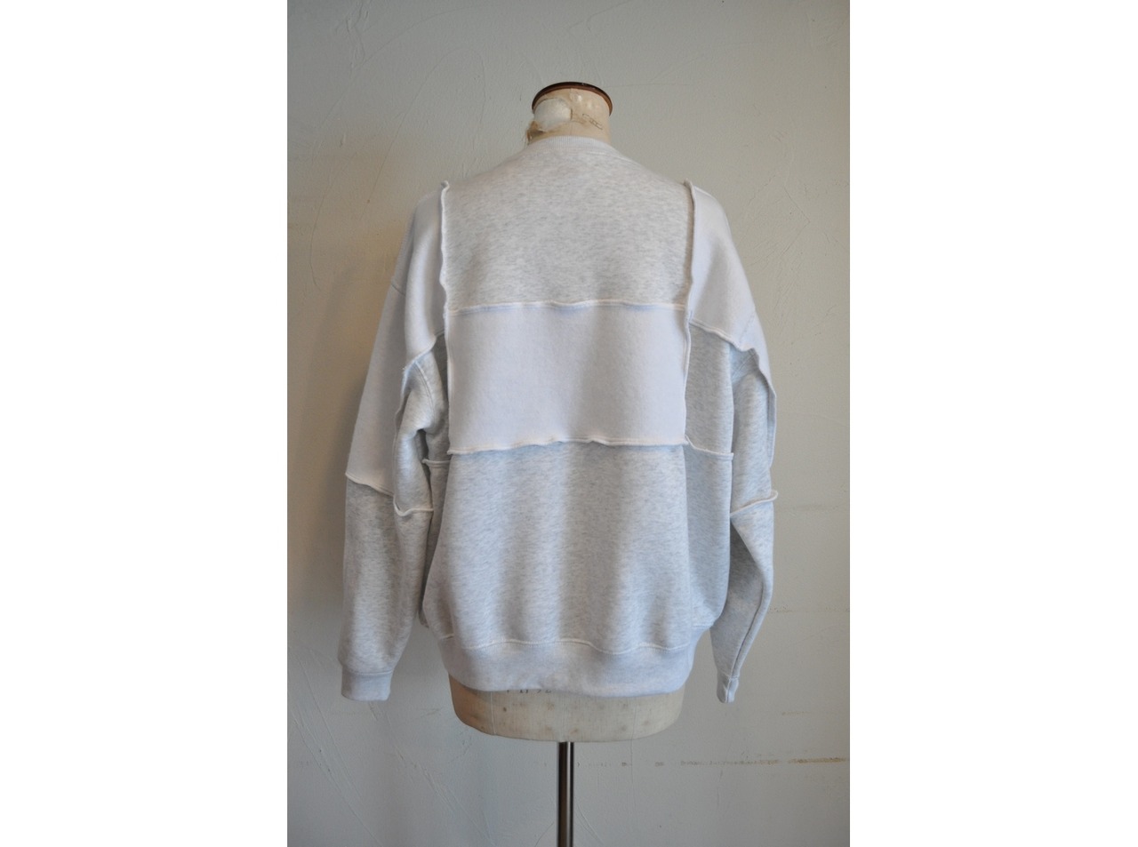 ●裏起毛のスウェットをパネルでカットし、表地と裏地が互い違いに組み合わされた、シンプルながらも立体感のあるプルオーバーです。