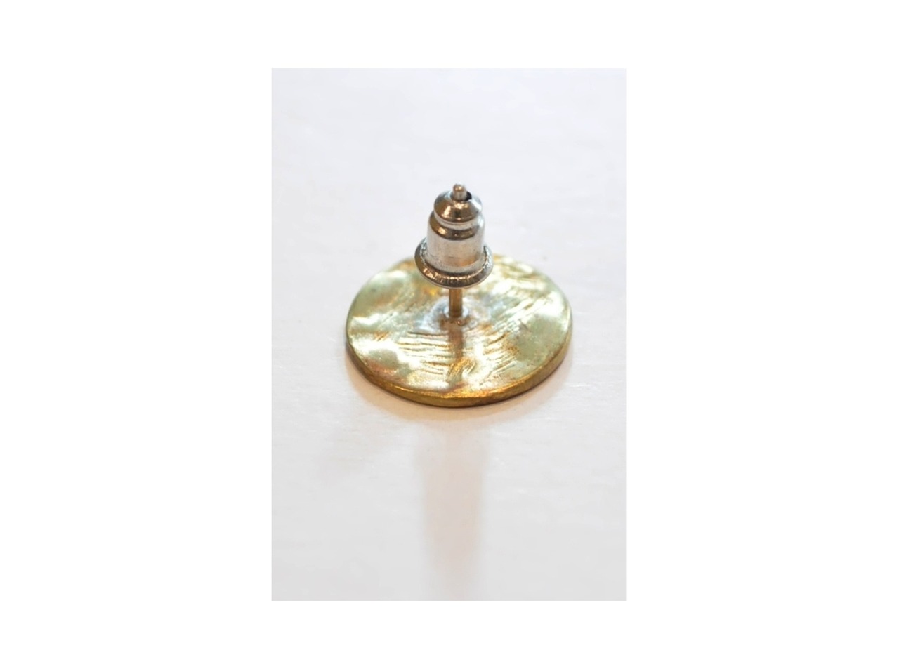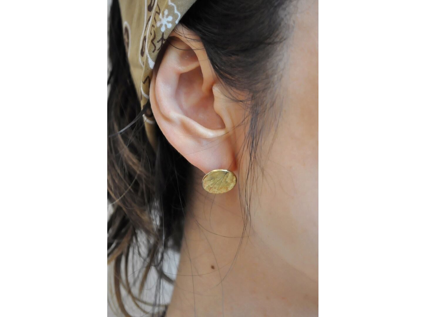 タイで買い付けてきた模様の入った真鍮素材のプレートをシンプルにピアスに仕立てています。