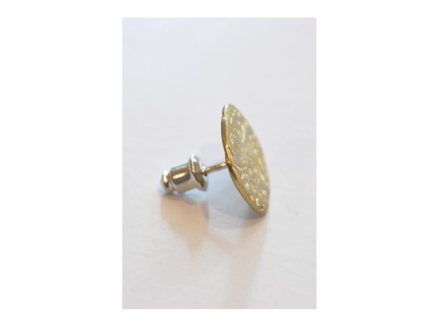 タイで買い付けてきた模様の入った真鍮素材のプレートをシンプルにピアスに仕立てています。