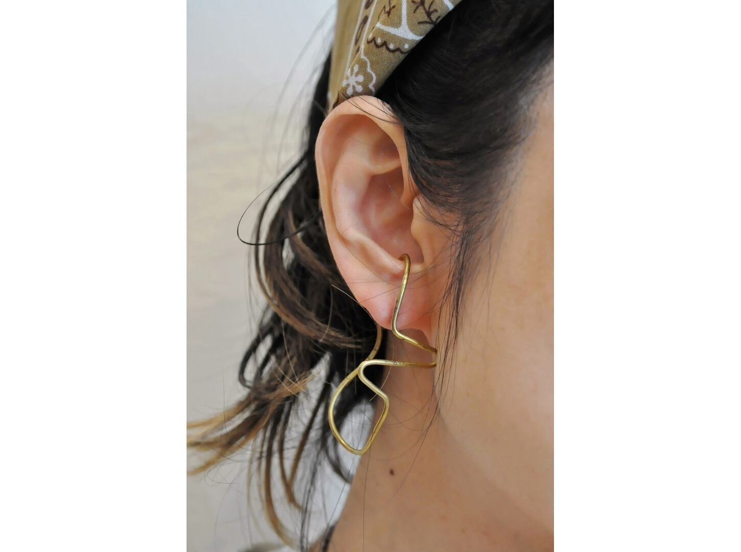 先端部分を耳の下部に入れ込み、耳に引っ掛かったように見えるデザインです。