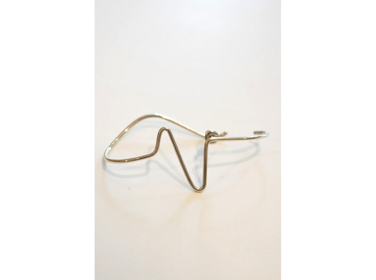 全体で見るとクリップのような形状になっており、形が複雑な方が正面になります。