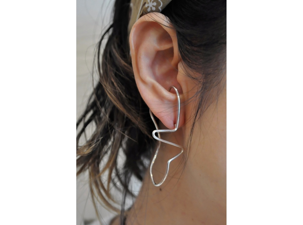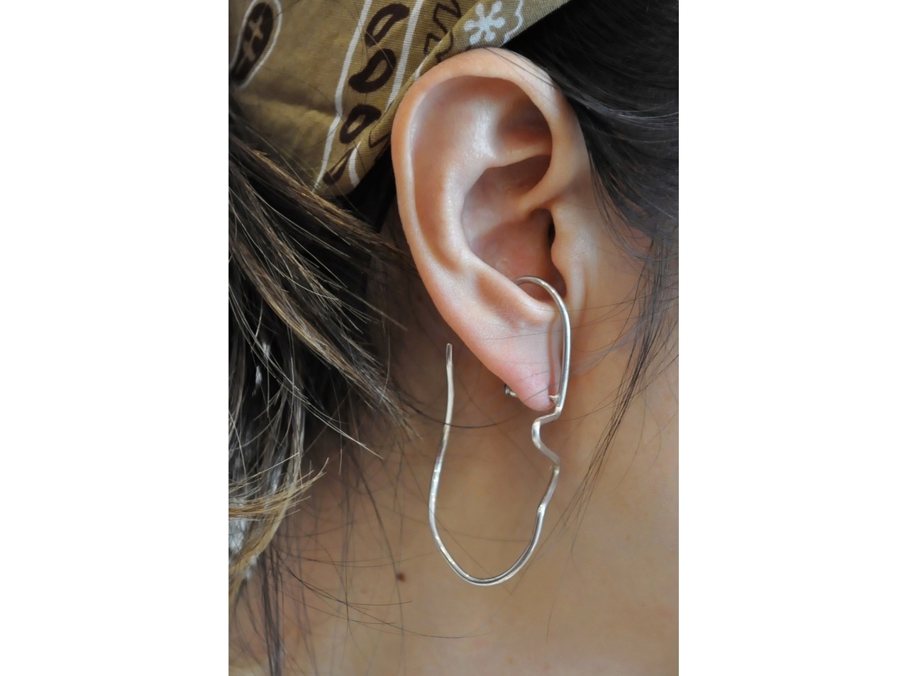 先端部分を耳の下部に入れ込み、耳に引っ掛かったように見えるデザインです。