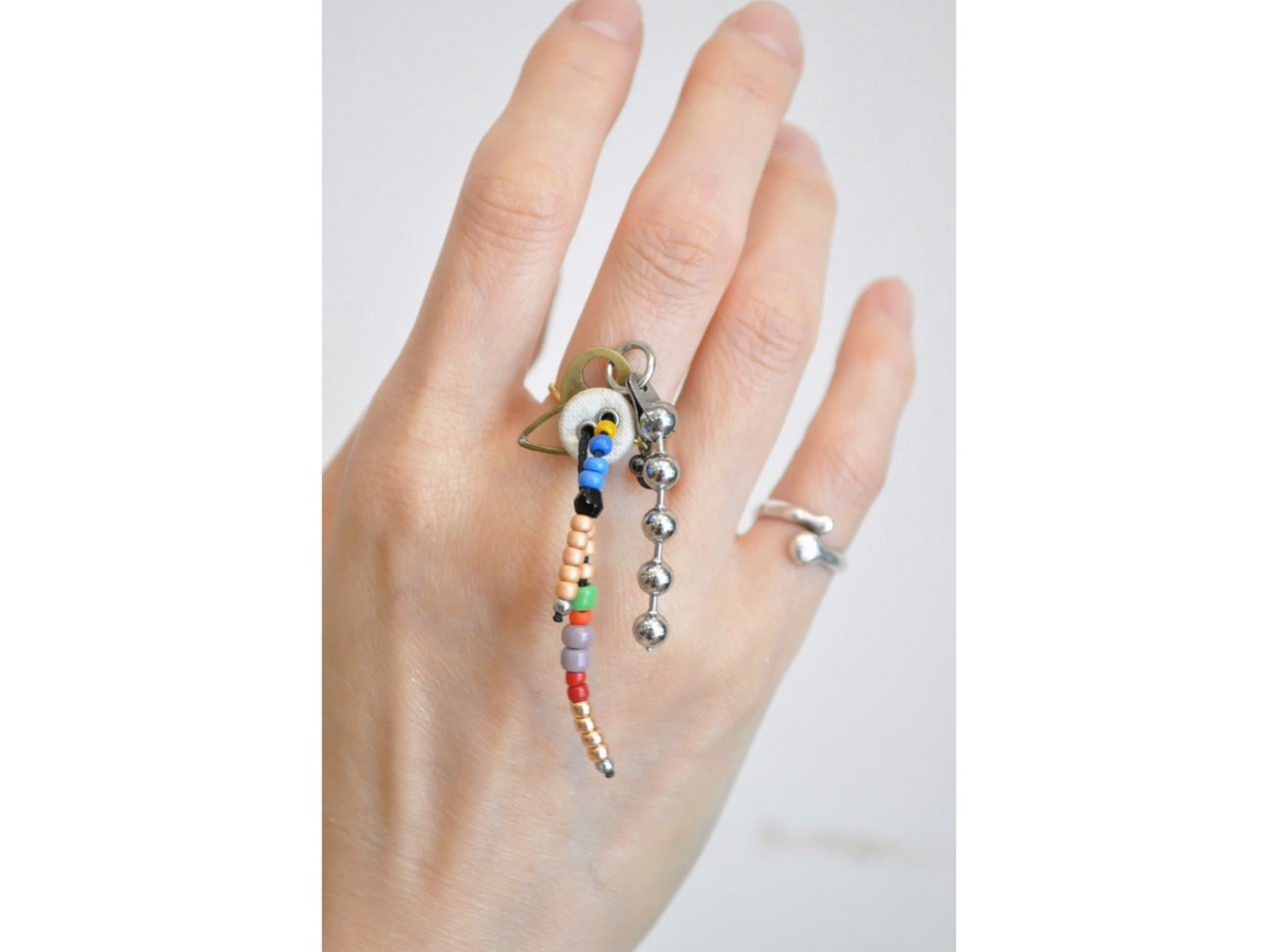 ●ヴィンテージパーツやビーズ等とanchor ballを使いデザインされた1点物。