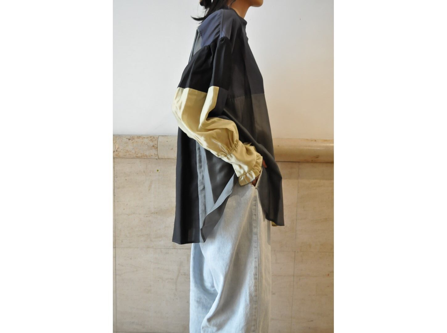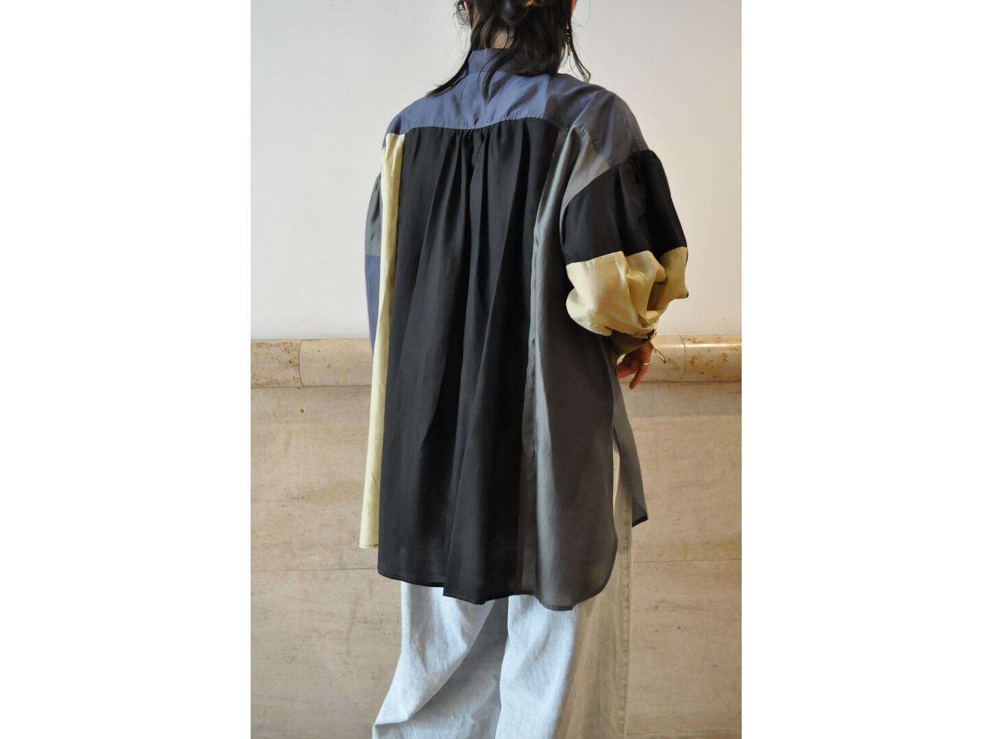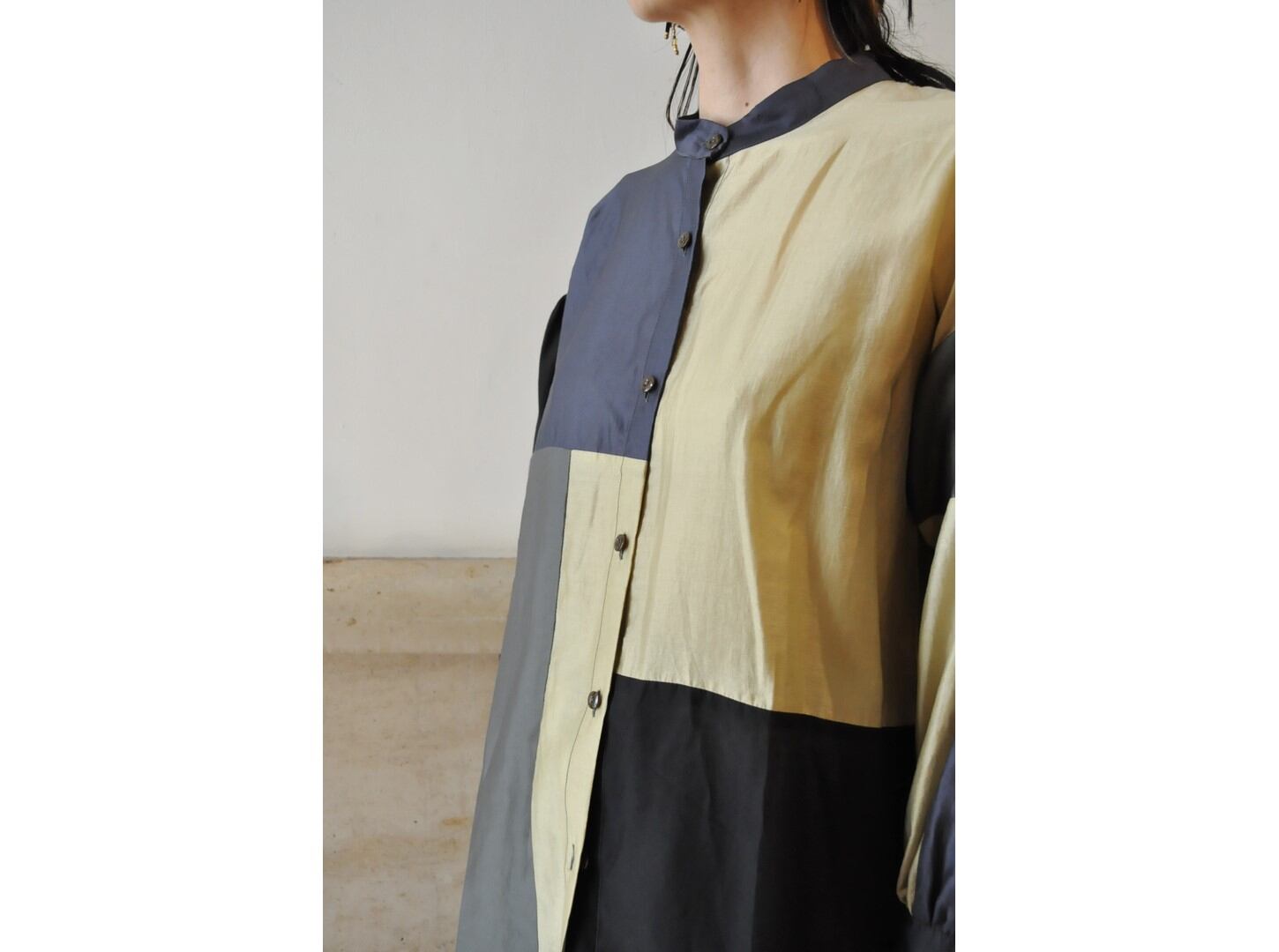 【RehersalL】color patch satin shirt /【リハーズオール】カラーパッチサテンシャツ