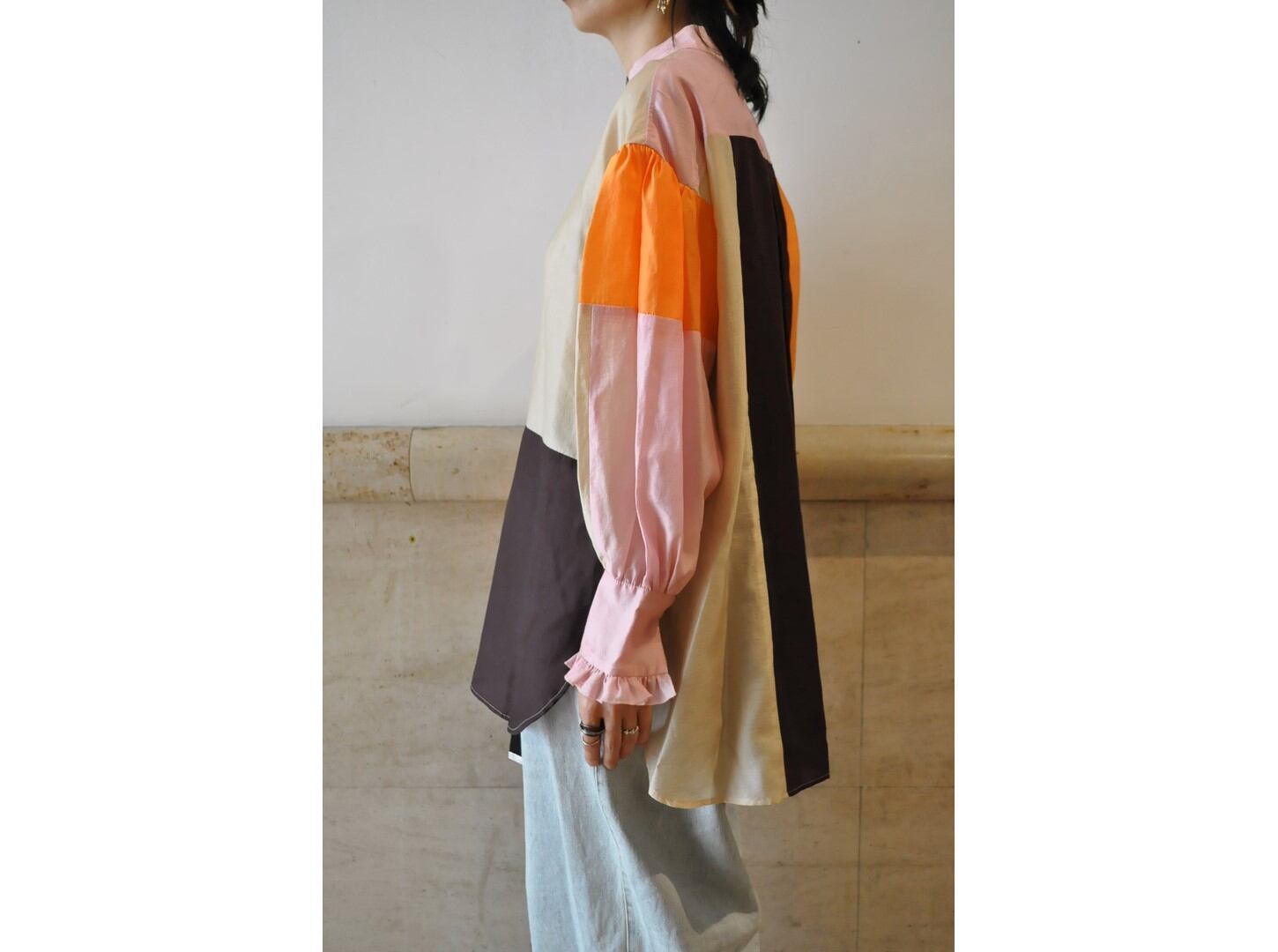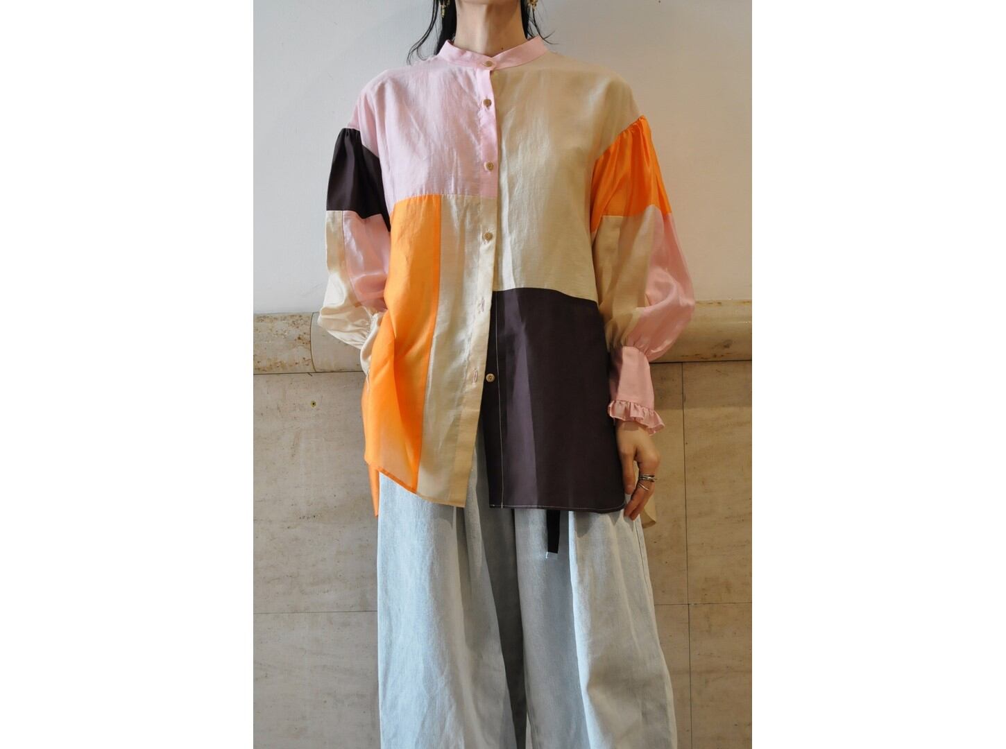 【RehersalL】color patch satin shirt /【リハーズオール】カラーパッチサテンシャツ