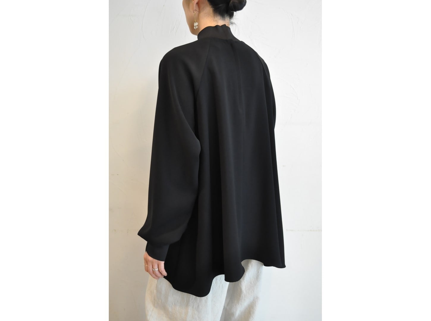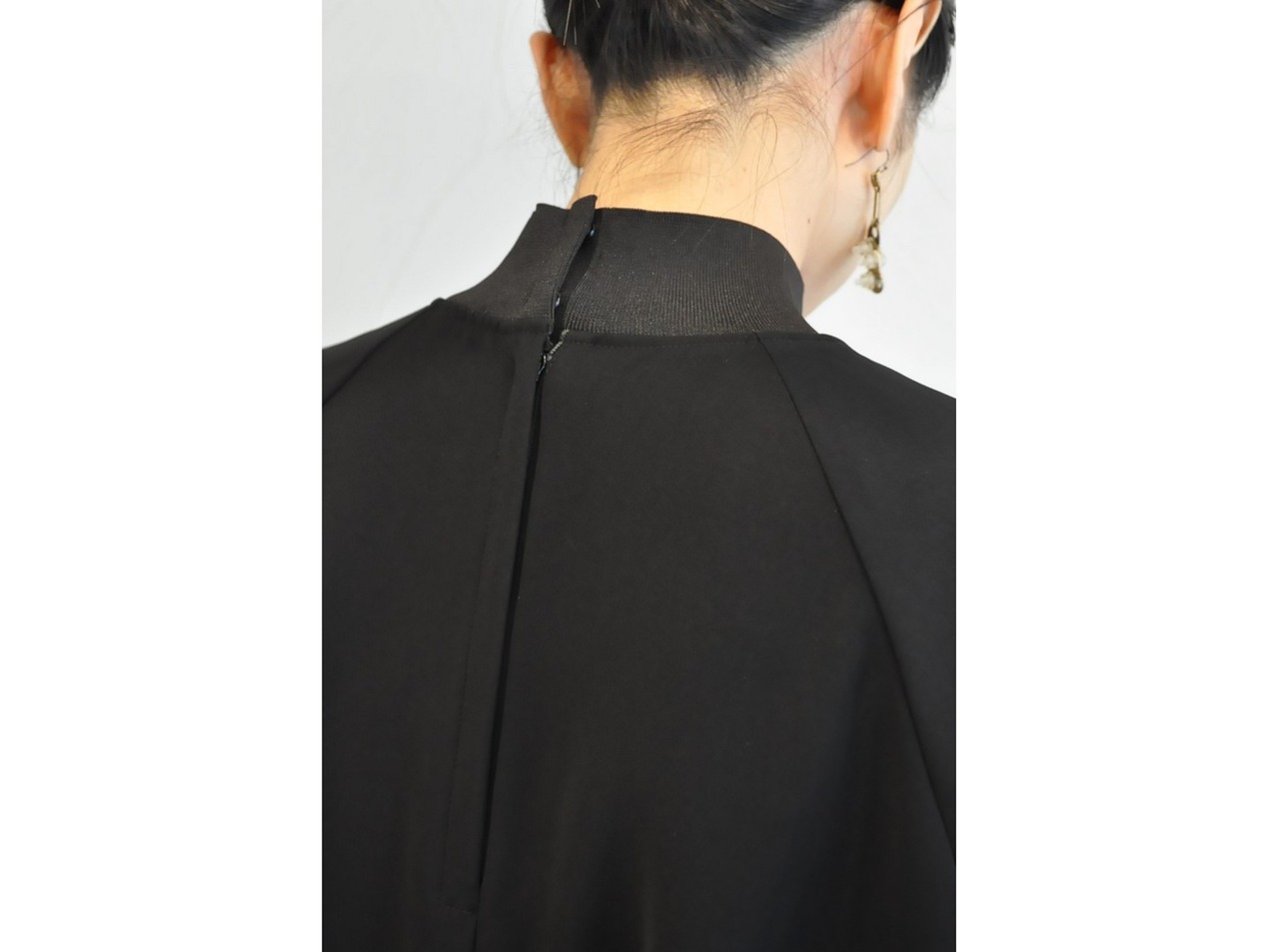 上品なハイネックとふんわりとした袖が女性らしいデザイン。