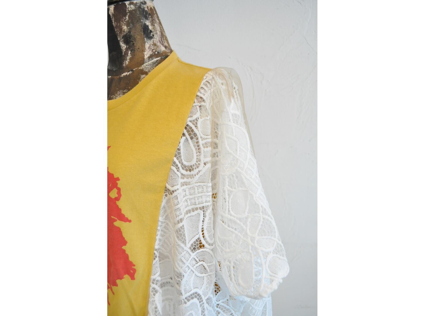 ●ユーズドのTシャツをベースにレースとの掛け合わせでリメイクしたアイテム。