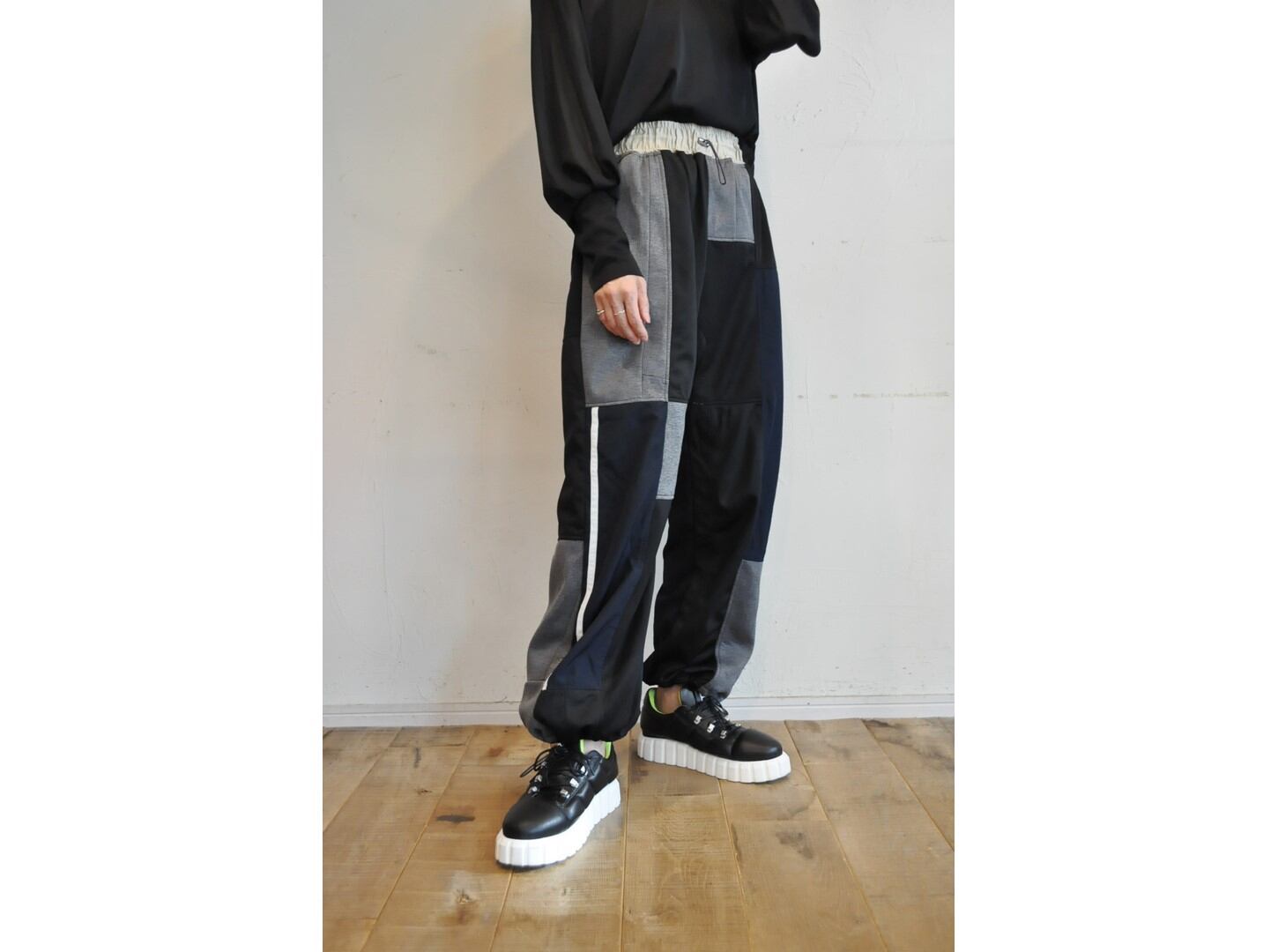 ●色々なジャージやナイロンパンツを集め、解体して、再構築したパッチワークパンツです。