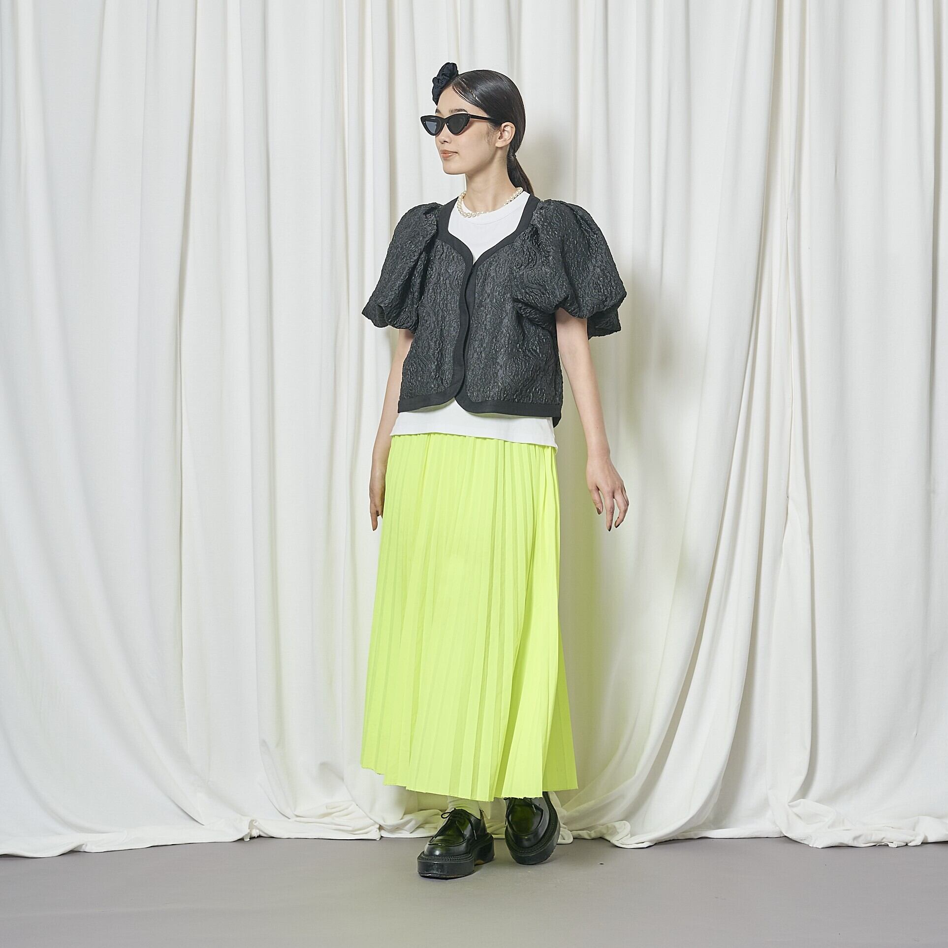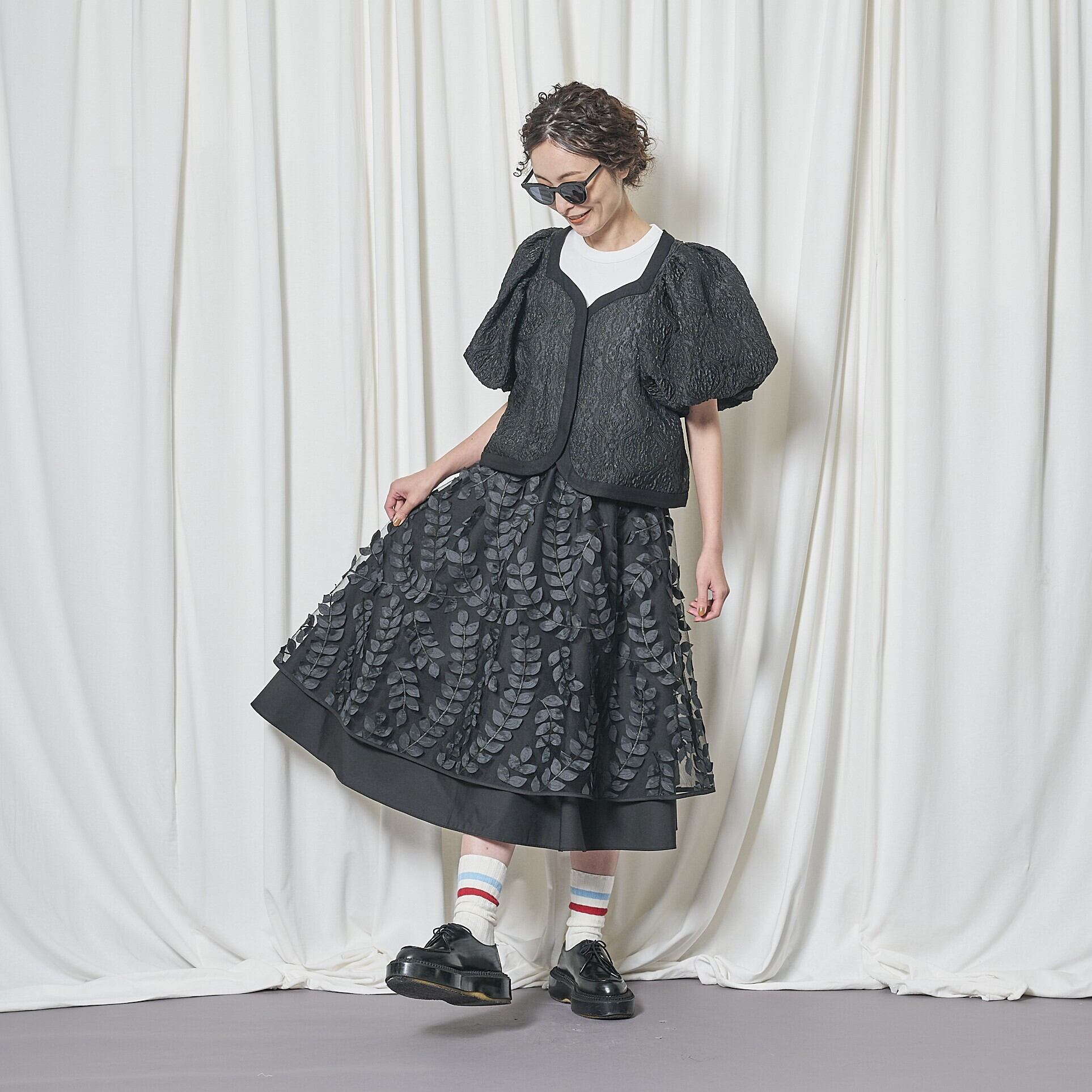 お勧めはブラック。とにかくこれは合わないんじゃないかな?と思うインナーにも、意外と楽しく、良いコーディネートが出来上がりました。パフスリーブがお好きな方はチャレンジしてみてください。