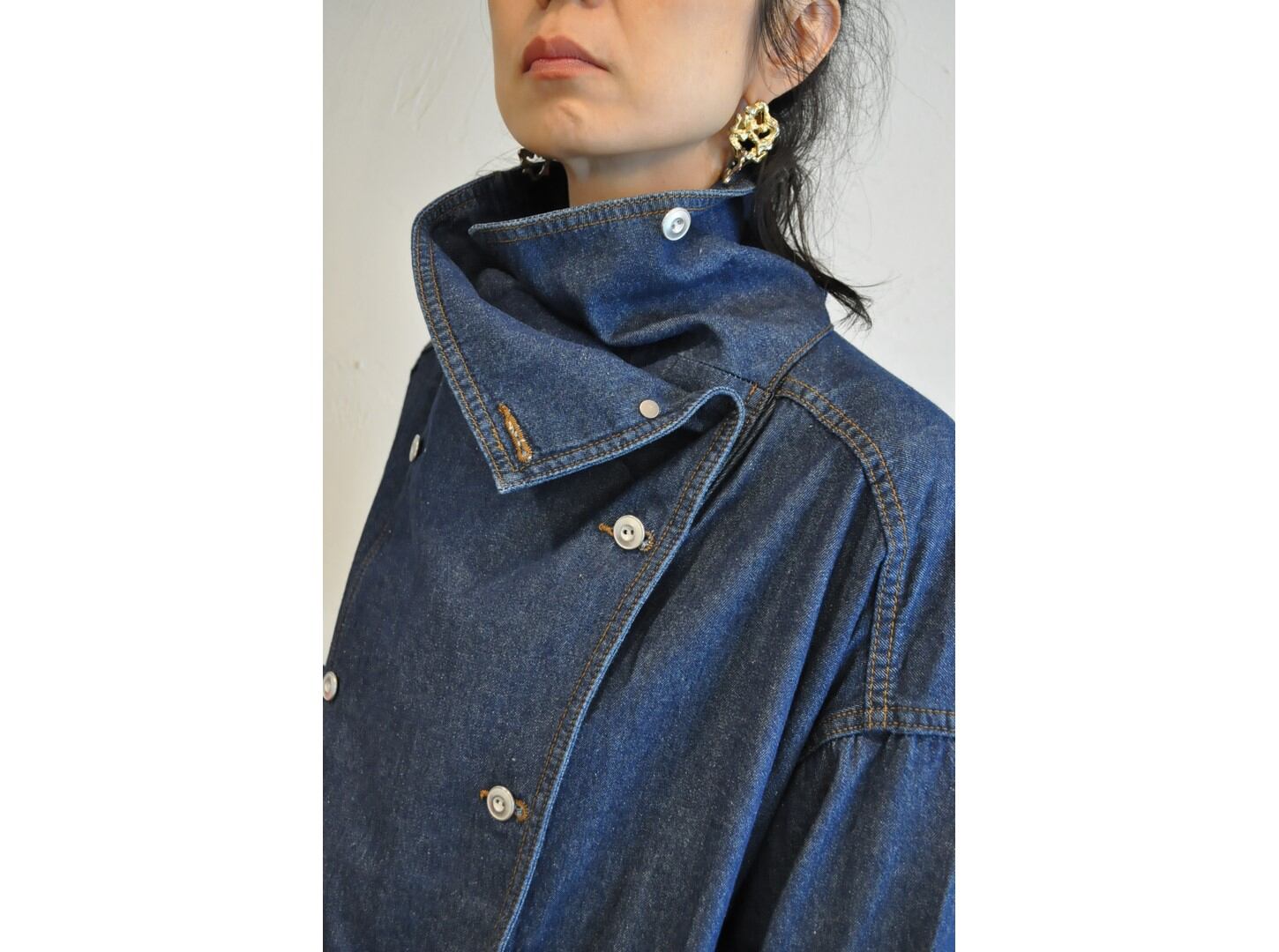 ボタンを上まで留めればシャープなモードスタイルに、開ければアシンメトリーな衿が印象的なアクセントになります。