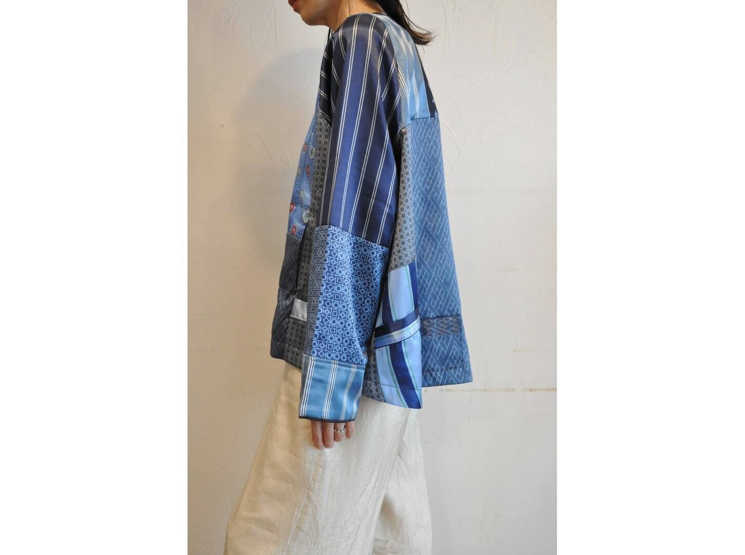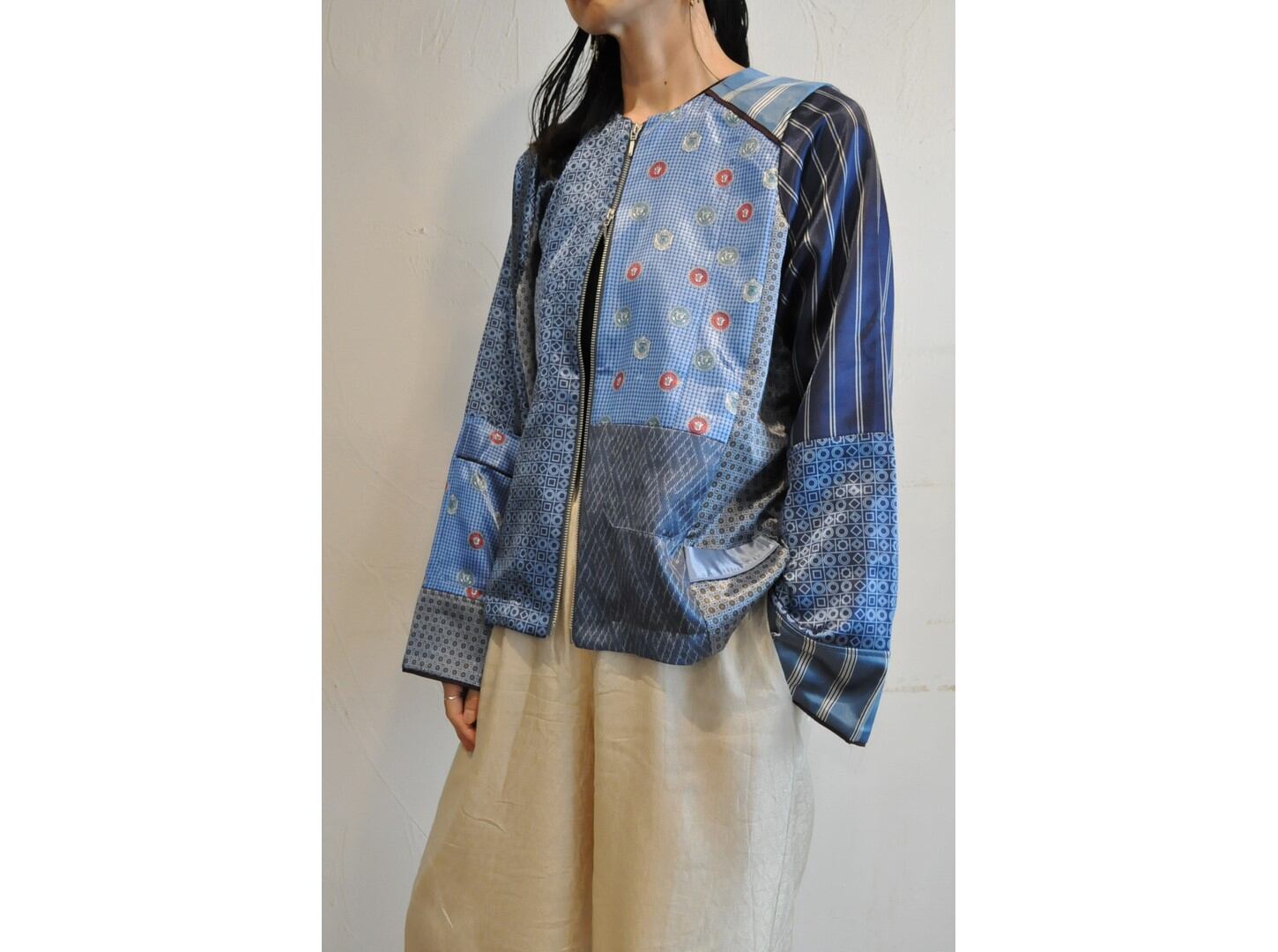 ●ヨーロッパの古着パジャマを集め、ブルーのみで再構築したジップジャケット。