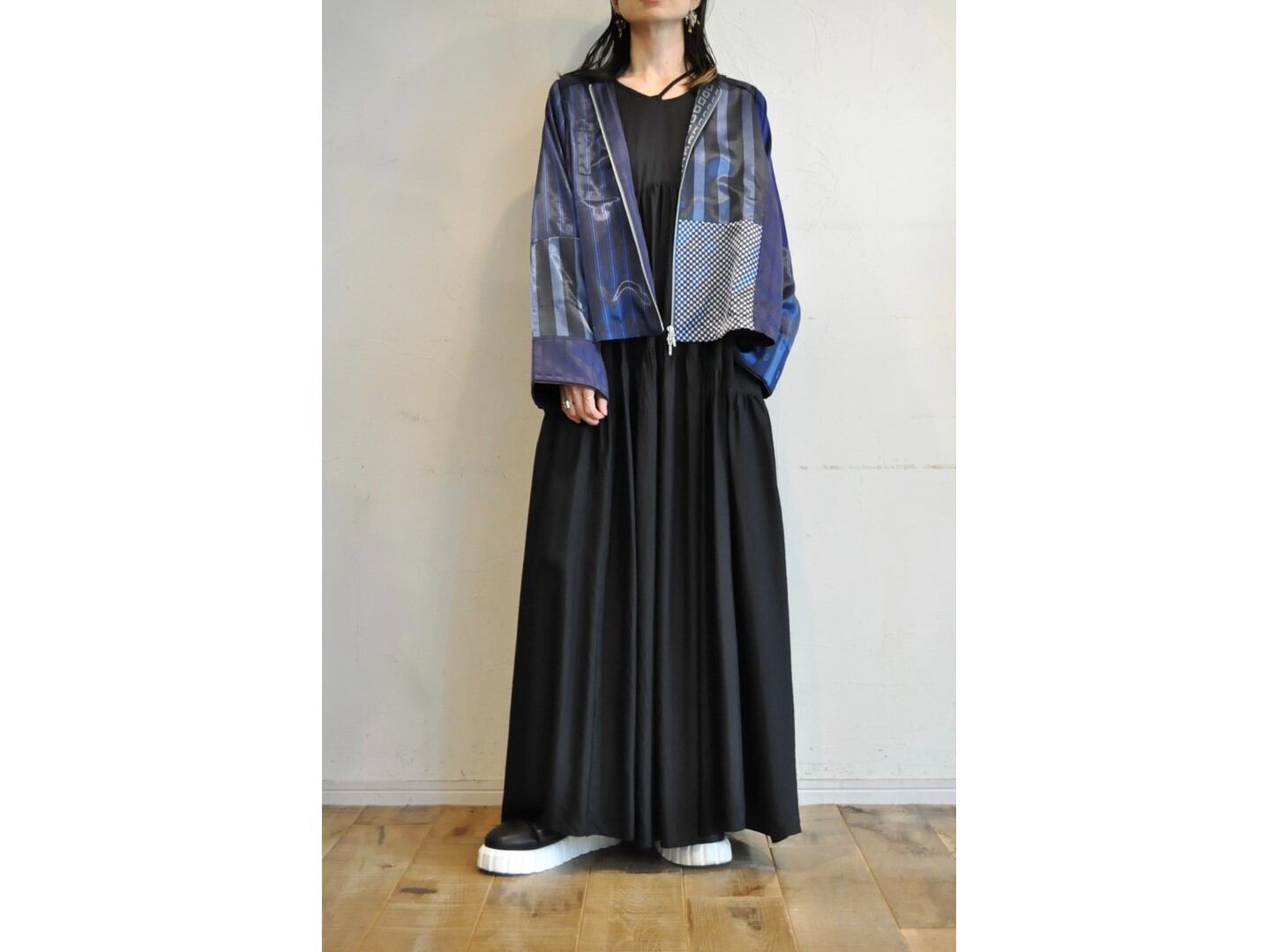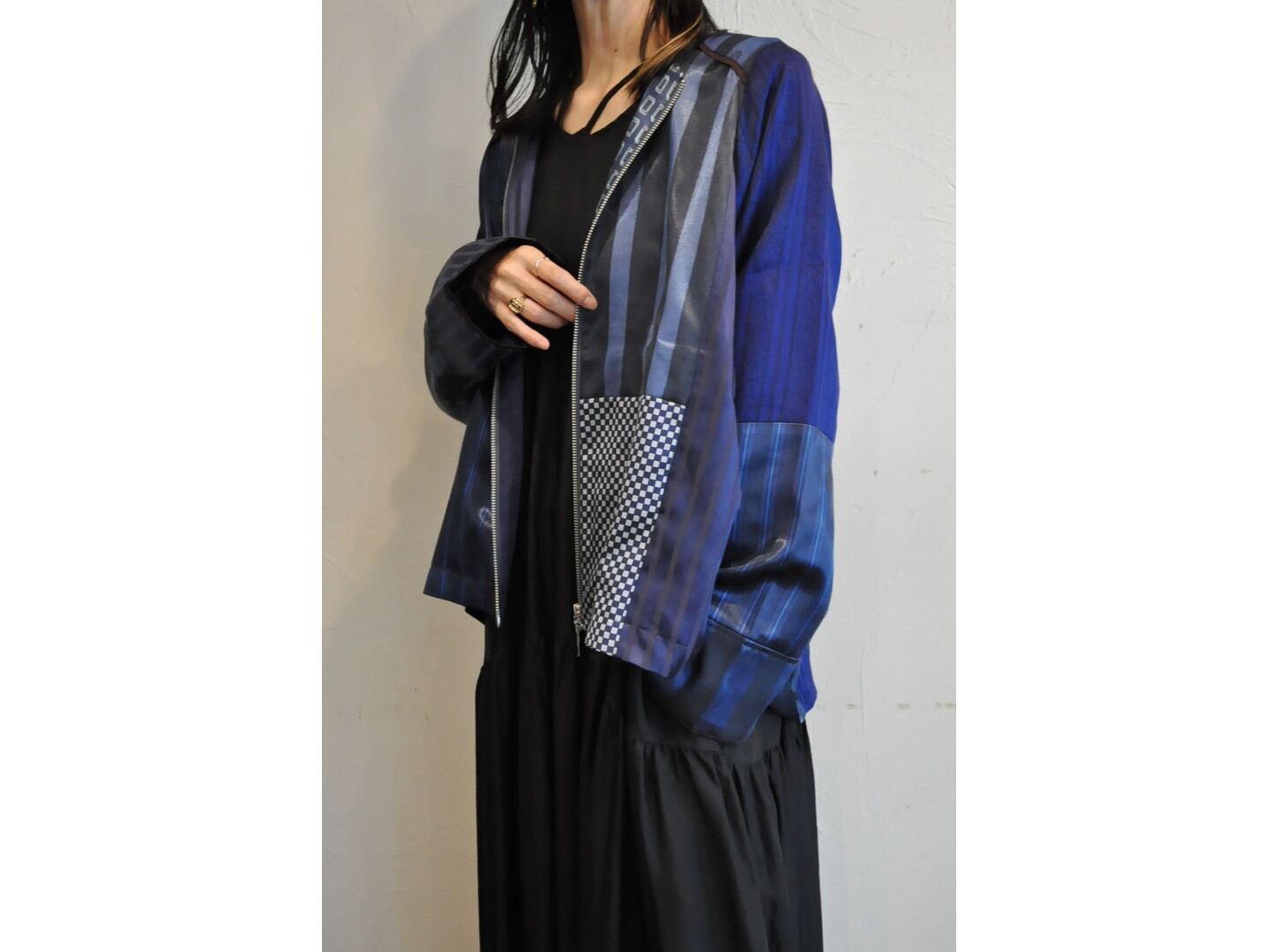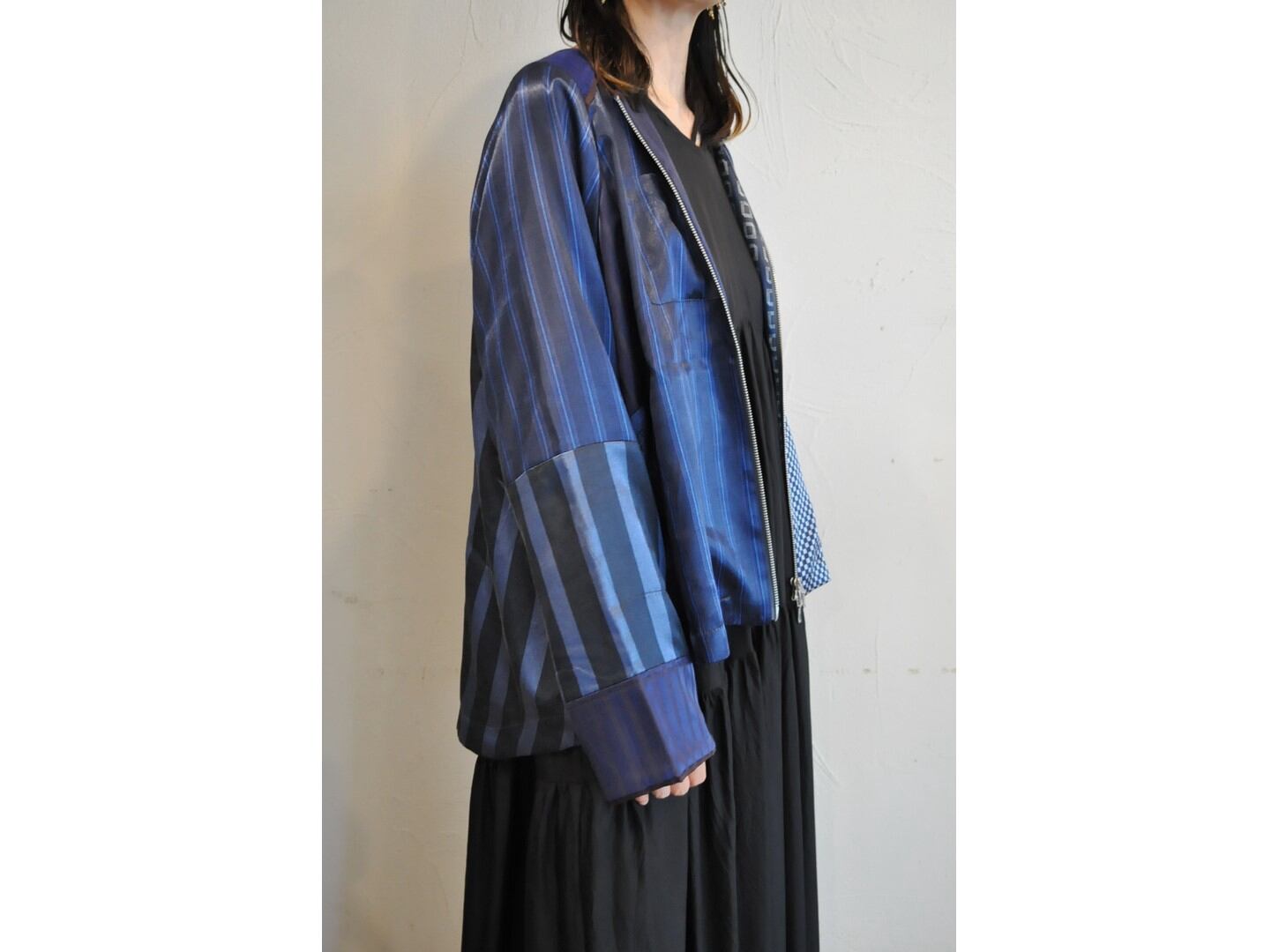 ●ヨーロッパの古着パジャマを集め、ブルーのみで再構築したジップジャケット。