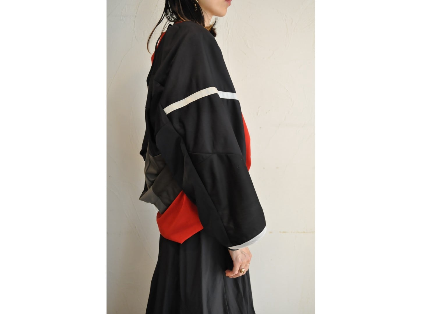 ●古着のジャージを解体して、再構築したパッチワークボレロ。