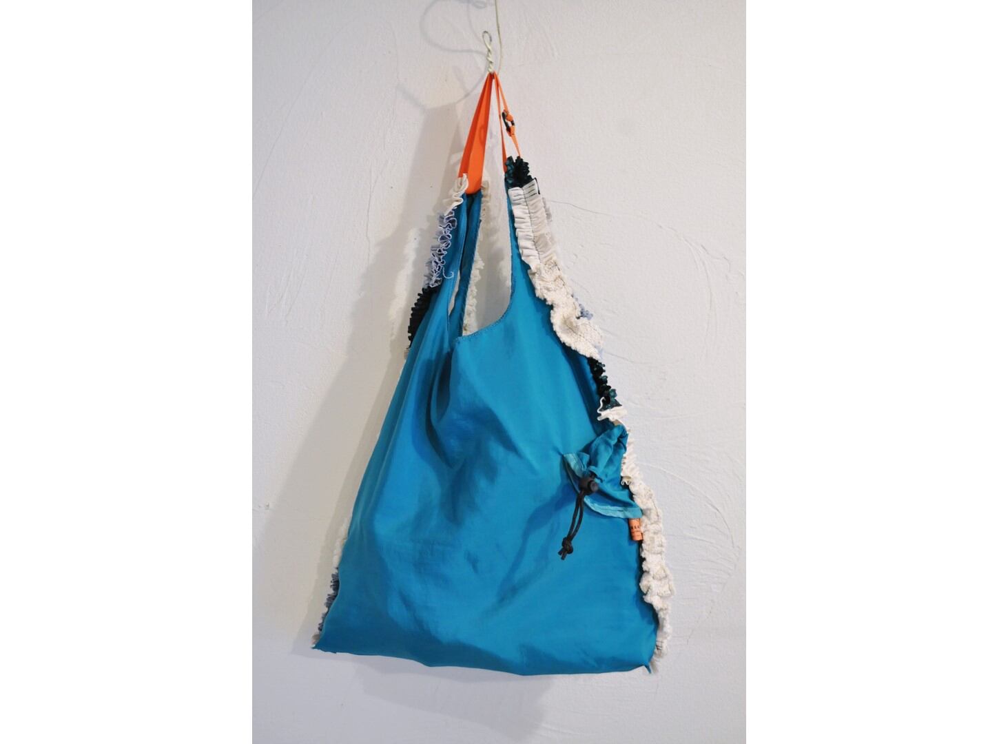 ●様々なカラーリングのナイロンバッグに花柄やコットン素材のフリルをあしらった愛らしいマルシェバッグです。