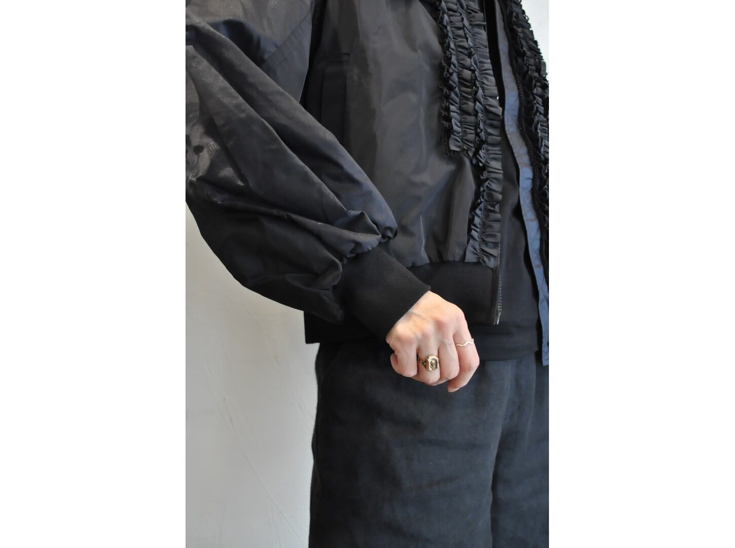 ●細かいフリルをフロントにランダムにあしらったブルゾン。