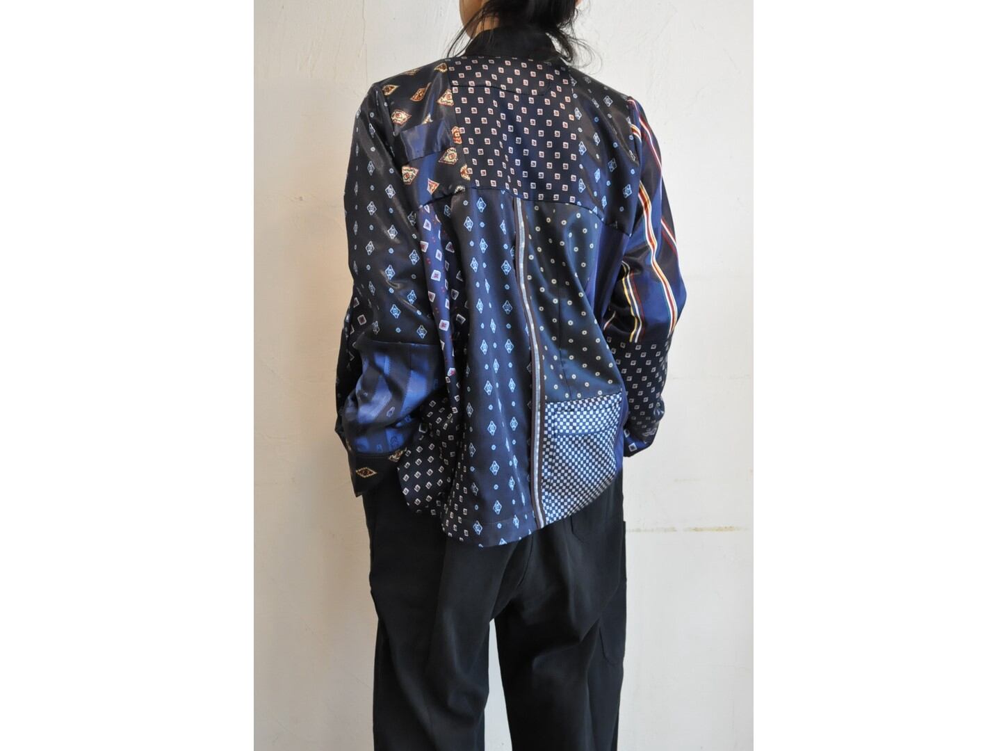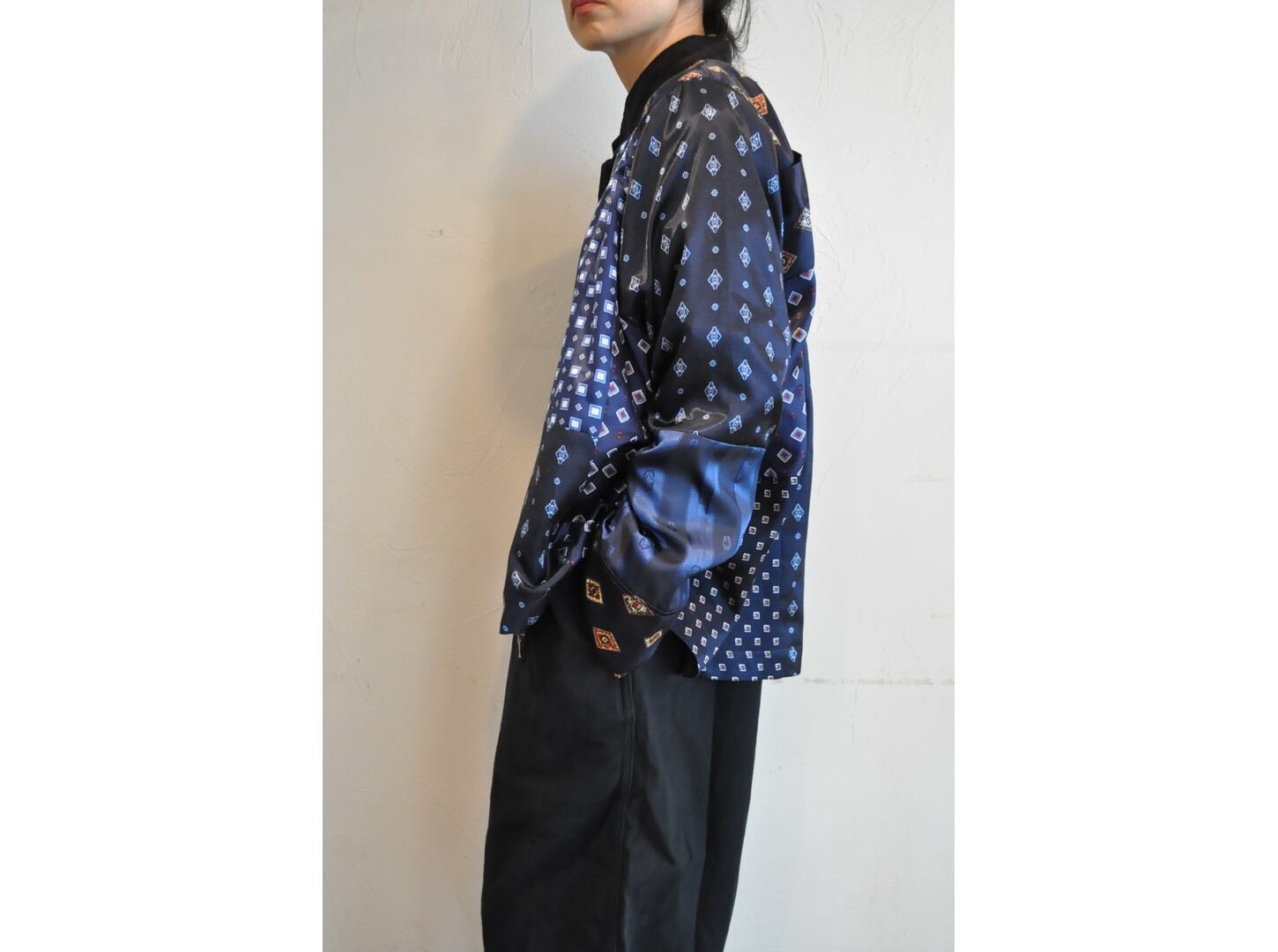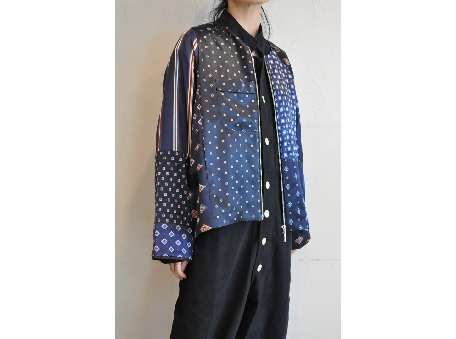 ●ヨーロッパの古着パジャマを集め、ブルーのみで再構築したジップジャケット。