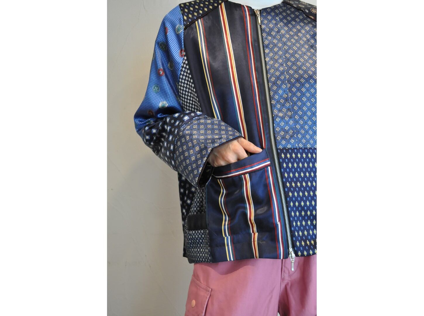●ヨーロッパの古着パジャマを集め、ブルーのみで再構築したジップジャケット。