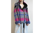 ジャガードで編み込まれた蛍光シャギーヤーンがさりげなく顔を覗かせる独自のチェックテキスタイル。